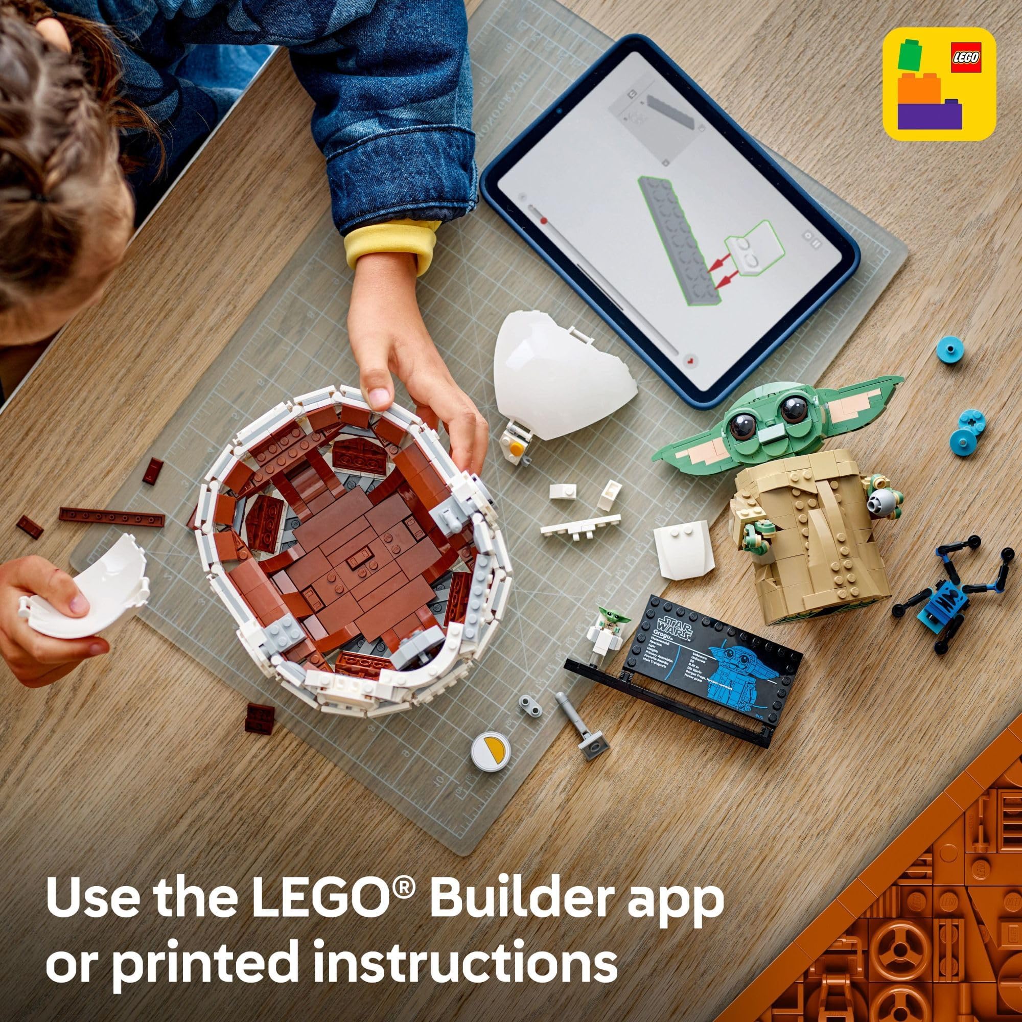Let kids build their love of Grogu with this LEGO Star Wars buildable Grogu toy figure with hover pram (75403). A cute gift for boys, girls and any Star Wars: The Mandalorian fans aged 10 plus, this build-and-display model makes fun and playful room decor. Grogu has dial-operated arms and posable head and ears, and he can be displayed in or out of the hover pram. There is also a brick-built Sorgan frog (Grogu’s favorite snack!), a shifter knob and a cookie for Grogu to hold. This Star Wars collectible toy building set includes a Grogu LEGO figure in a small buildable hover pram, plus an information plaque to complete a joyful display. The set comes with step-by-step instructions and check out the LEGO Builder app for intuitive, 3D zoom and rotate viewing tools to enhance the creative experience. Contains 1,048 pieces.