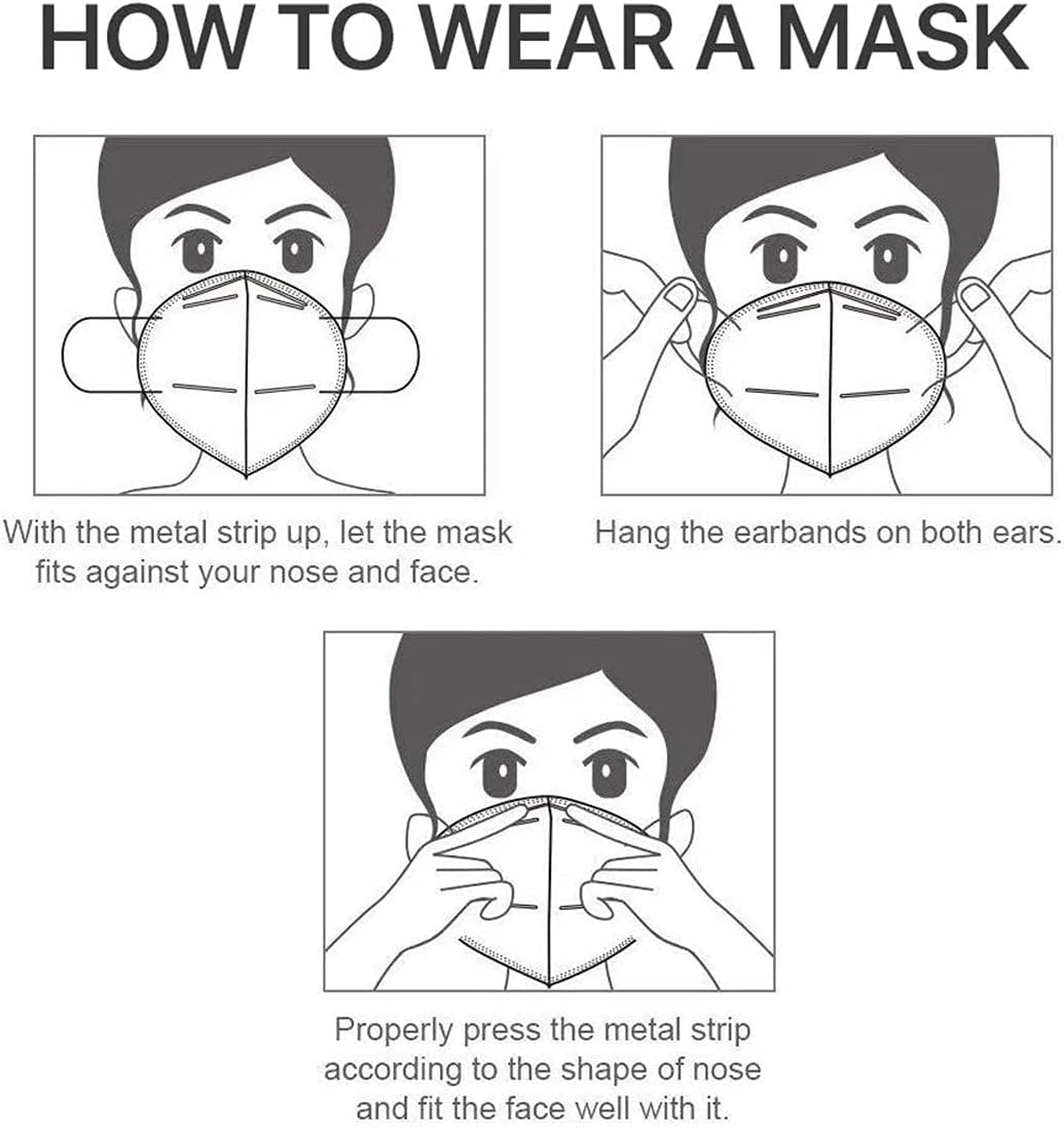 - ✔המבנה התלת-ממדי מעוצב בהתאם לצורת הפנים האנושית כדי להבטיח את ההידוק והבטיחות. עם לולאת אוזניים רכה ואלסטית וגמישה, המסייעת להסיר לחץ מהאוזניים לחוויה נוחה. קליפס אף מתכוונן יכול לעזור למסכה להתחבר בצורה מושלמת לפנים. ארבעת הצדדים מתחברים היטב לפנים; לפיכך, מסכת המגן KN95 מונעת כניסה ישירה של אוויר לא מסונן פנימה.