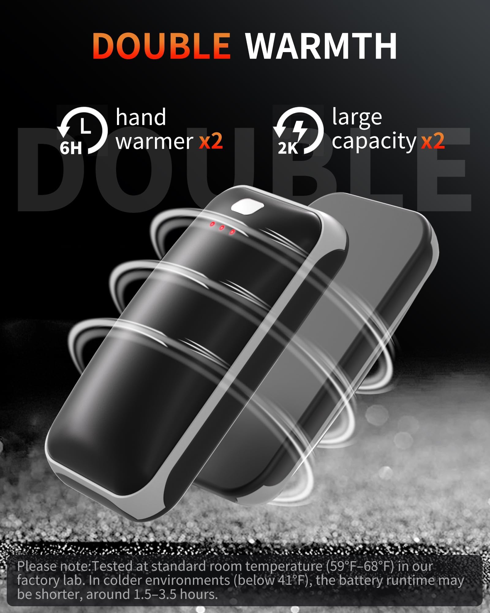 - 【חום לאורך כל היום וטעינה מהירה】 מחממי הידיים שלנו, המצוידים בשבבים איכותיים ובסוללות כפולות של 2000 מיליאמפר/שעה, מציעים חום לאורך זמן תוך שמירה על משקל קל. כבל הטעינה הדו-צדדי מבטיח טעינה מהירה תוך שעתיים עד שלוש בלבד, כך שתמיד תהיו מוכנים להישאר חמים.