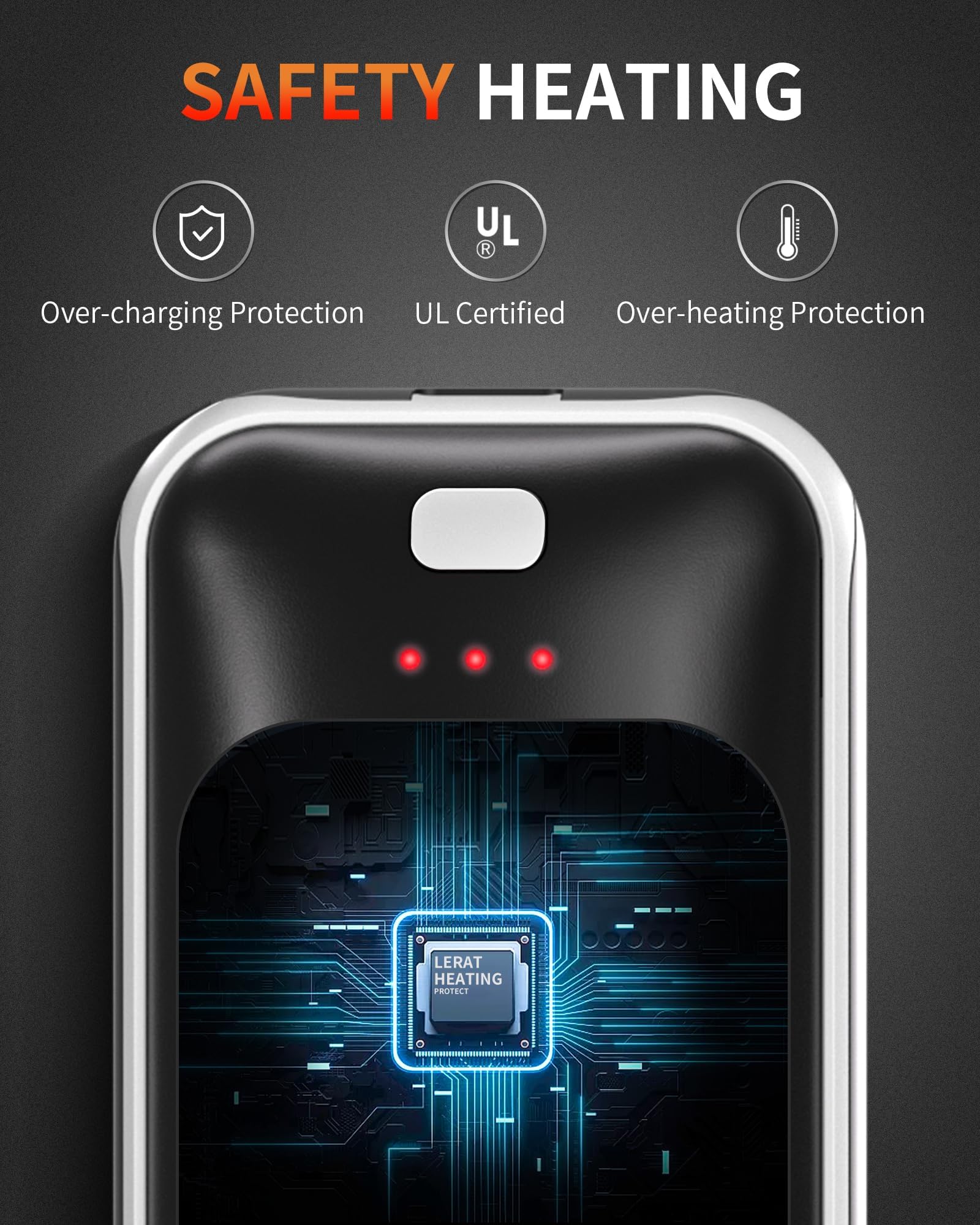 - 【3 הגדרות חימום】 תהנו מחימום מהיר תוך 3 שניות בלבד עם שלוש רמות טמפרטורה מתכווננות: נעים (34-50°C) לשימוש פנימי, חם (38-50°C) לפעילויות יומיומיות, וחם (45-50°C) לחום חיצוני.