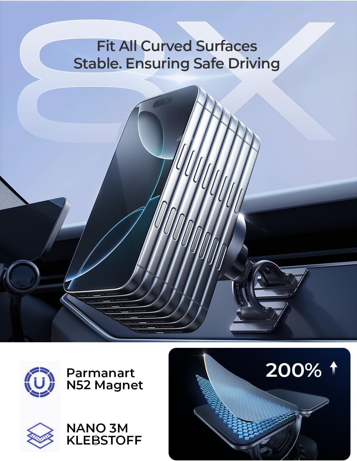 - Tips:1 Ensure the base sticker is correctly positioned and securely adhered once to avoid weakening the adhesive from adjustments 2.Stick it on a smooth car surface as miuch as possible.3.Note: Charging speed decreases after 75% 4.Not support any non-Magsafe cases over 3mm thickness 5.You will get 24-month worry-free service, and our friendly customer service.