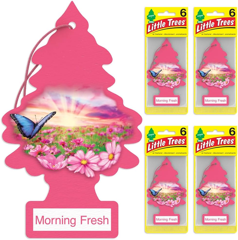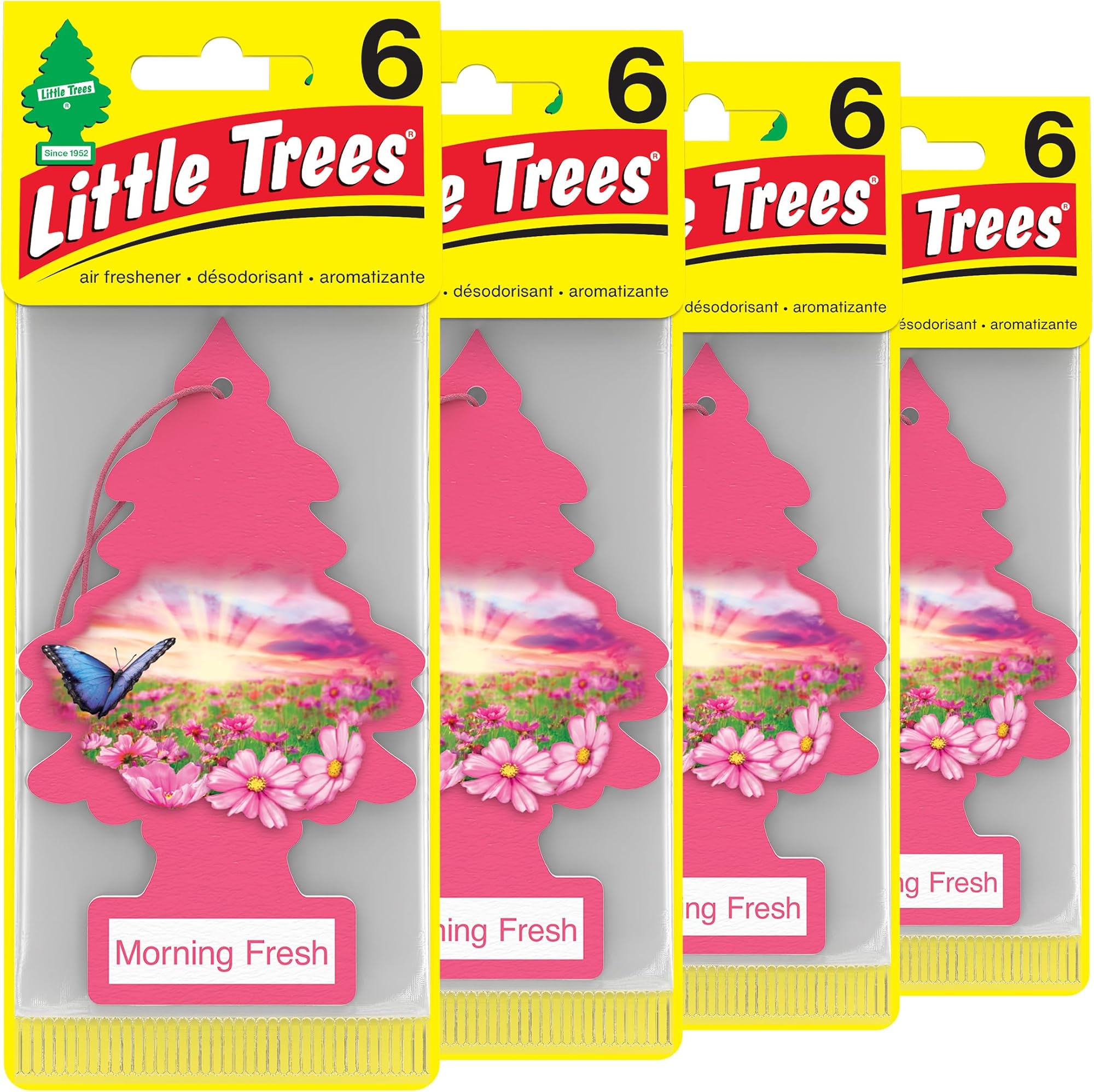 מטהר אוויר לרכב LITTLE TREES | עץ תלוי מספק ניחוח מתמשך לרכב ולבית | בוקר רענן, 24 מטהרי אוויר