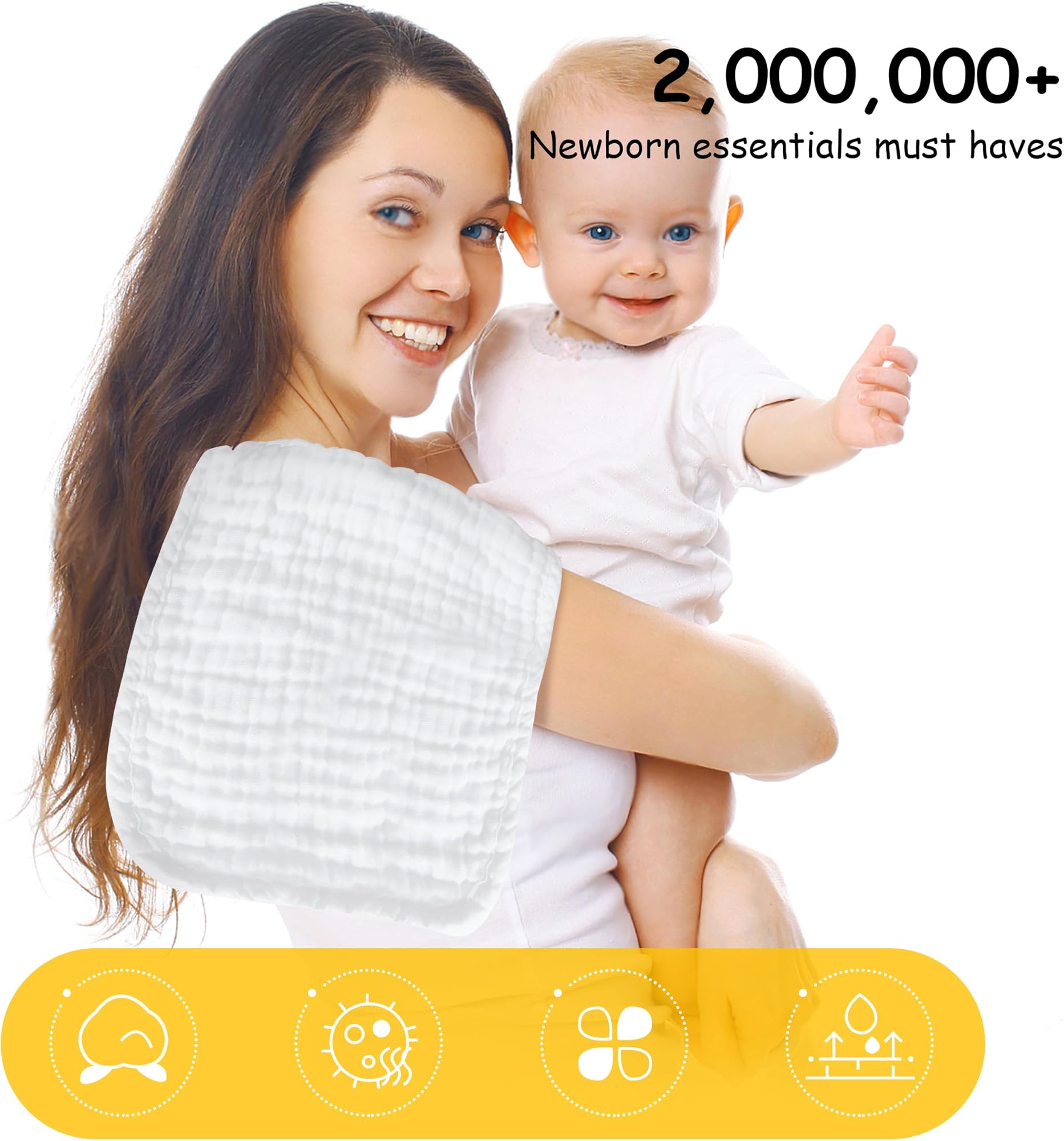 חבילת 12 מטליות גיהוק מוסלין 100% כותנה מטליות מוסלין גדולות 20''x10'' מטלית גיהוק רכה וסופגת במיוחד לתינוקות של Lovely Care - לבן