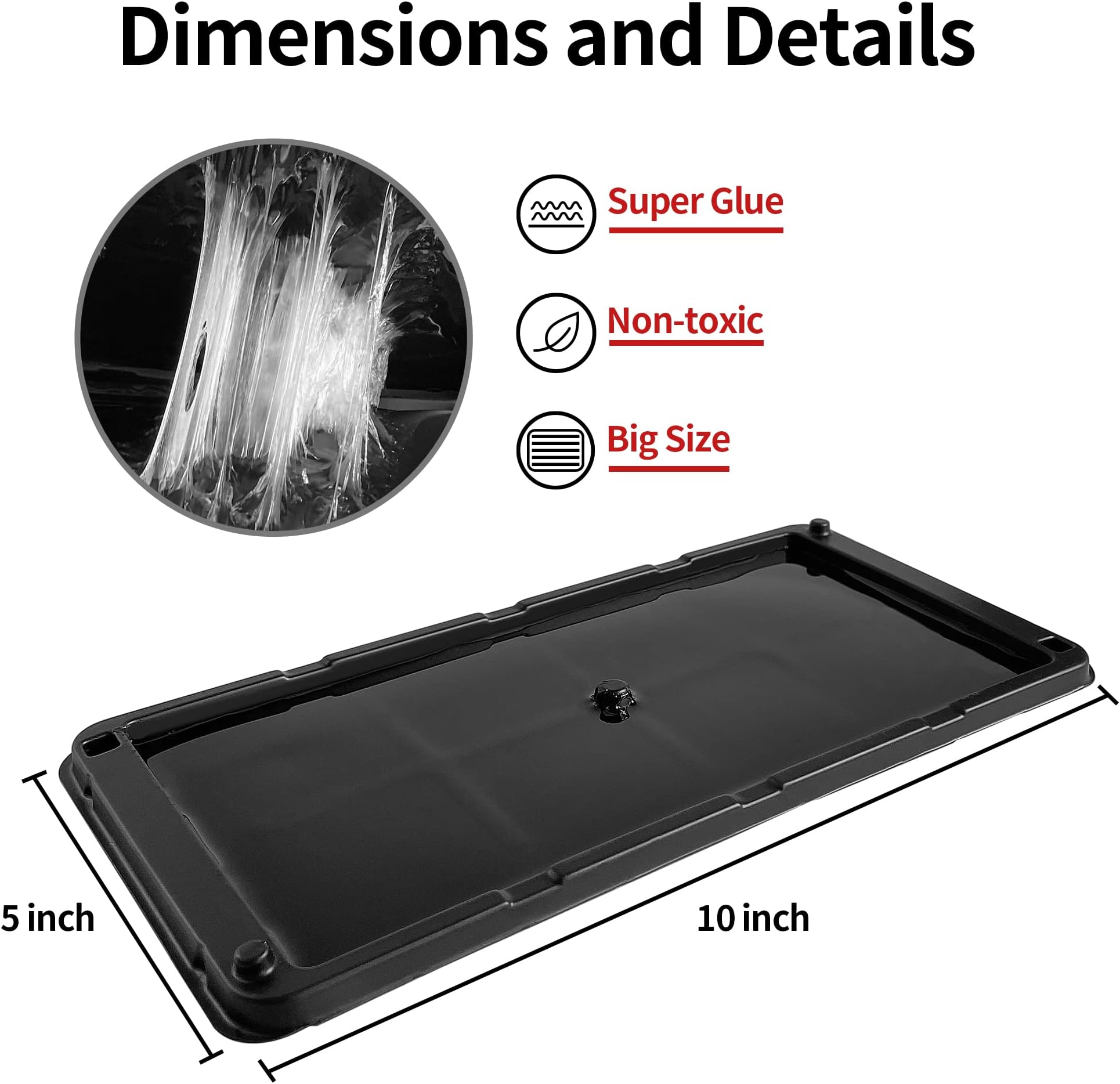 - יישום רחב: מגשי 12x25 ס"מ אלה מגיעים בזוגות, ניתן להציב מלכודות באזורים שבהם העכברים נוטים ביותר לרוץ, לאורך קירות או פנלים שבהם מזיקים פעילים. אידיאלי למרתף, מגורים, מחסנים, מסעדות, בתים, שימוש פנימי, מבני תעשייה ועליית גג. יעיל בלכידת כל דבר, החל מנחשים, עכברים, חולדות, לטאות, צרצרים, עקרבים ועכבישים.