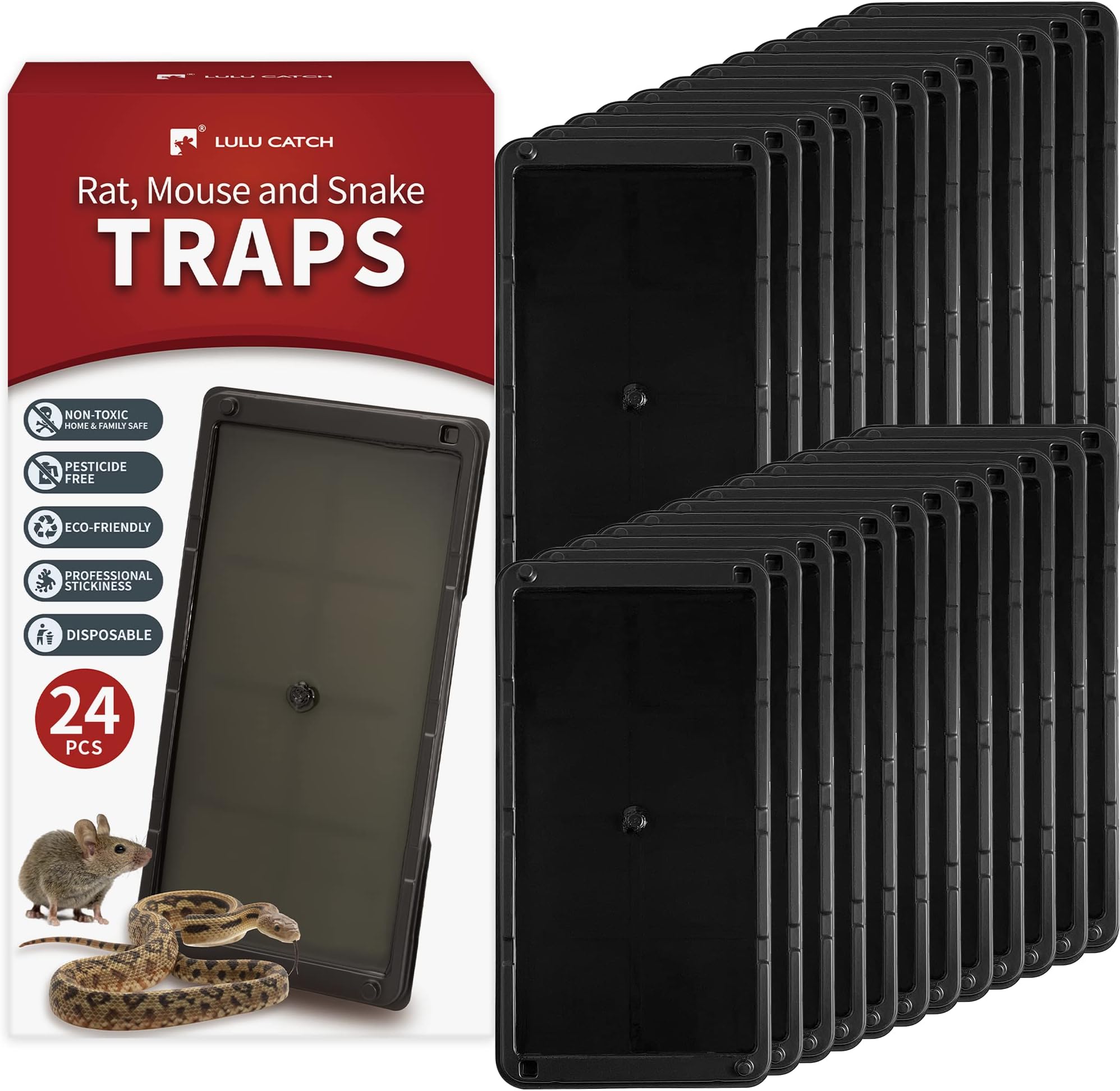 מלכודות דבק-על LULUCATCH חבילה של 24 לעכברים ונחשים, מלכודות דביקות גדולות וכבדות יותר עם דבק לא רעיל. מלכודות עכברים דביקות לשימוש פנימי, קל להתקנה, הדברה בטוחה לחיות מחמד