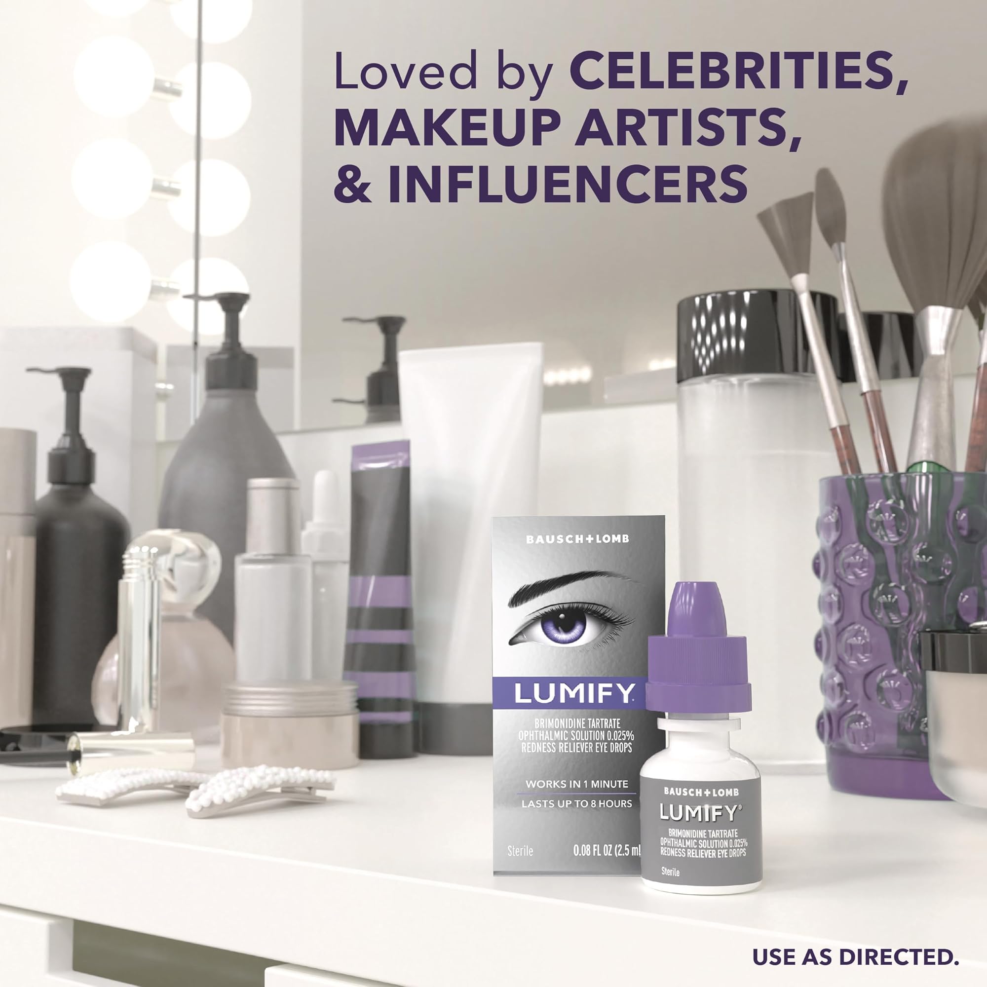 - טיפות עיניים לעיניים אדומות: טיפות העיניים LUMIFY להקלה על אדמומיות מפחיתות משמעותית את האדמומיות ועוזרות לחשוף את הזוהר הטבעי של העיניים. ממומחי טיפוח העיניים של Bausch + Lomb, LUMIFY פועל תוך דקה ונמשך עד 8 שעות.