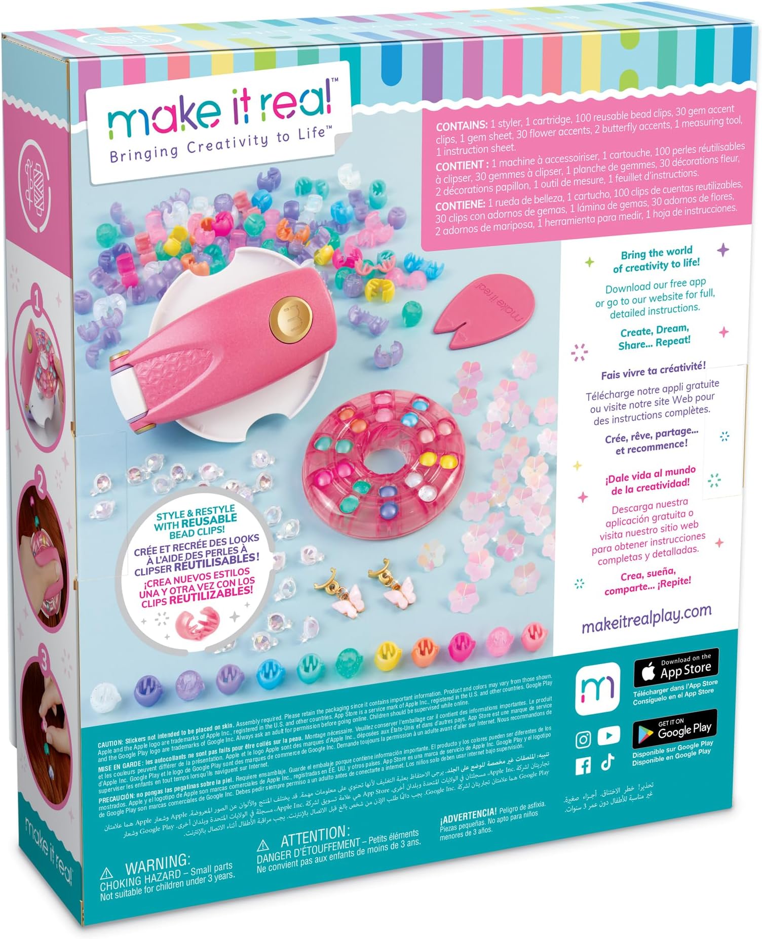 MIR: סט עיצוב שיער SNAP N' GLAM - גזרו וצרו סגנונות לכל סוג שיער! בעזרת 100 קליפסי חרוזים כלולים עם עיטורי פרפר, אבני חן ופרחים, פאשניסטות צעירות יכולות ליצור מראות המבטאים את הסגנונות הייחודיים שלהן בשלושה שלבים פשוטים: טעינה, גזירה, עיצוב! טעינו את המחסנית בקליפסי החרוזים הרצויים, ולאחר מכן צרבו אותה לשיער בקלות. כל קליפסי החרוזים והאביזרים קלים להסרה וניתנים לשימוש חוזר. כולל כלי מדידה להבטחת יישום קל. השתמשו כאביזרים או חברו קווצות שיער יחד לסגנונות מורכבים יותר, האפשרויות הן אינסופיות! זהו רעיון נהדר למתנה לבני נוער אופנתיים, לכל אירוע!