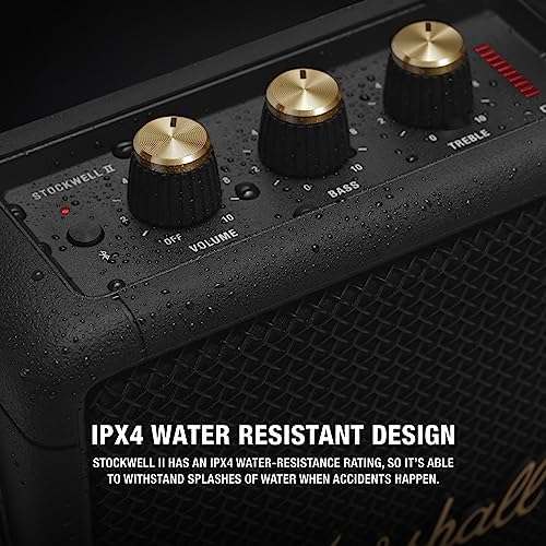 Marshall Stockwell II Portable Bluetooth Speaker, Black and Brass
