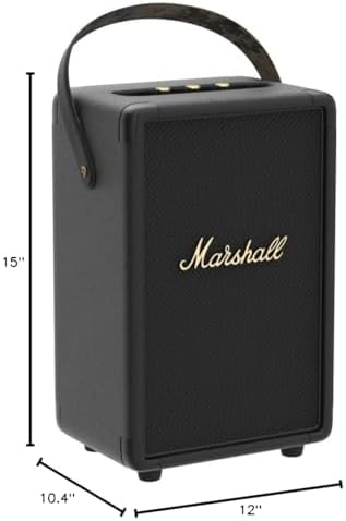 Bring the show on the road with tufton, the mightiest portable speaker from Marshall. Tufton packs 20+ hours of portable playtime, allowing you to go further, for longer. Bluetooth 5.0 technology Allows you to connect to a variety of wireless devices with a range of 30ft. Tufton is engineered as a 3-way system, producing sound from three separate drivers – a tweeter, mid-range driver and subwoofer. This configuration produces a clear and articulate sound across all frequencies. An additional mid-range driver is located on the rear of the speaker to give the listener a true 360° blumlein stereo sound experience. Echoing the legacy of rock ‘n’ roll, tufton has a solid metal grille that pays homage to the steel mesh grille found on many microphones and a guitar inspired carry strap for easy portability. An IPX2 water-resistant rating and flush mounted corner caps Make it an extremely rugged and durable speaker. Tufton is a behemoth of sound, Made for the open road.