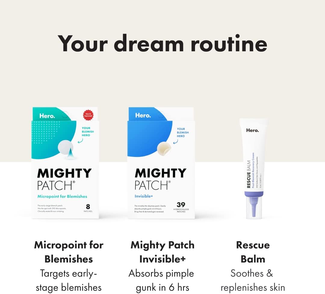 - מדבקת האקנה הבלתי נראית לשעות היום: Mighty Patch Invisible+ היא מדבקת ההידרוקולואיד החשאית ביותר שלנו עד כה. דקה וקלת משקל, אך עדיין יעילה. כך שתוכלו לענוד אותה במהלך היום כדי להפחית את מראה הפצעונים.