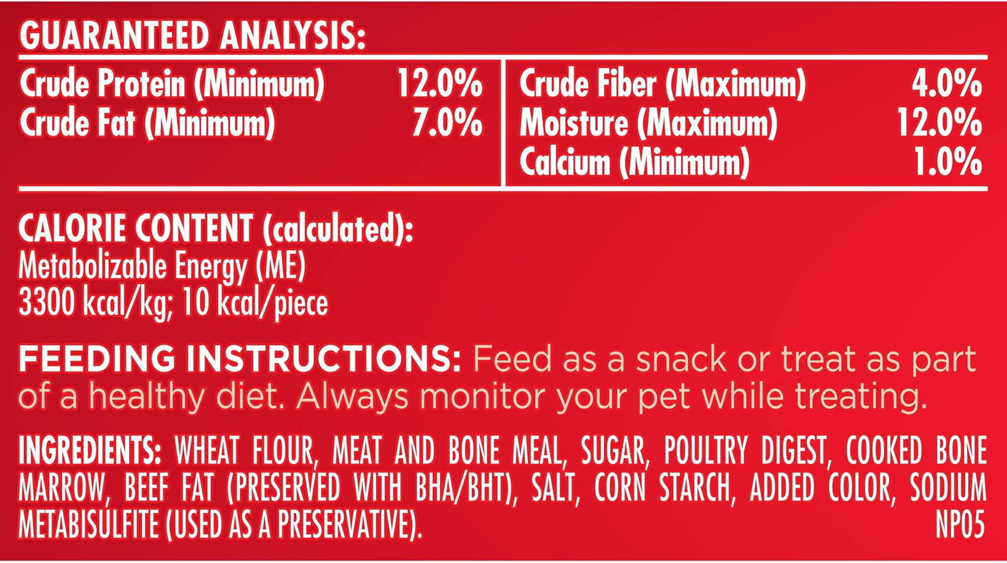 - מכיל חבילה אחת (1) של חטיפי כלבים קטנים במשקל 40 אונקיות עם מח עצם אמיתי