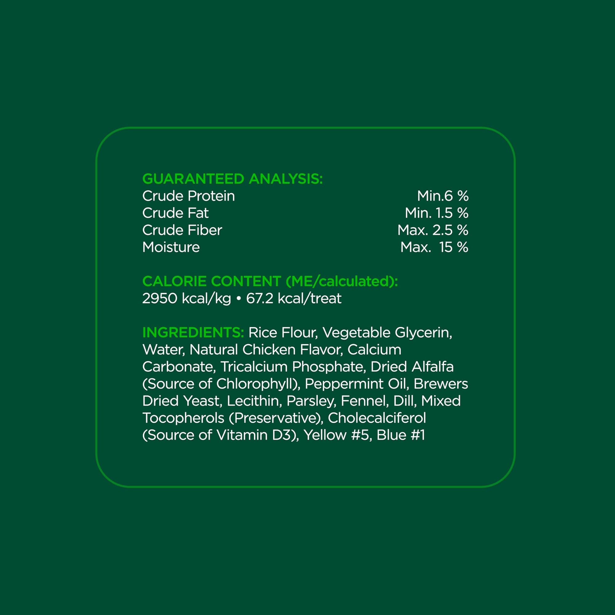חטיפי לעיסה דנטליים של Minties לכלבים, 8 יחידות, חטיפי דנטלי בטעם מנטה מומלצים על ידי וטרינרים לכלבים בינוניים, מנקים עצמות שיניים, נלחמים בריח רע מהפה ומסירים פלאק ואבנית