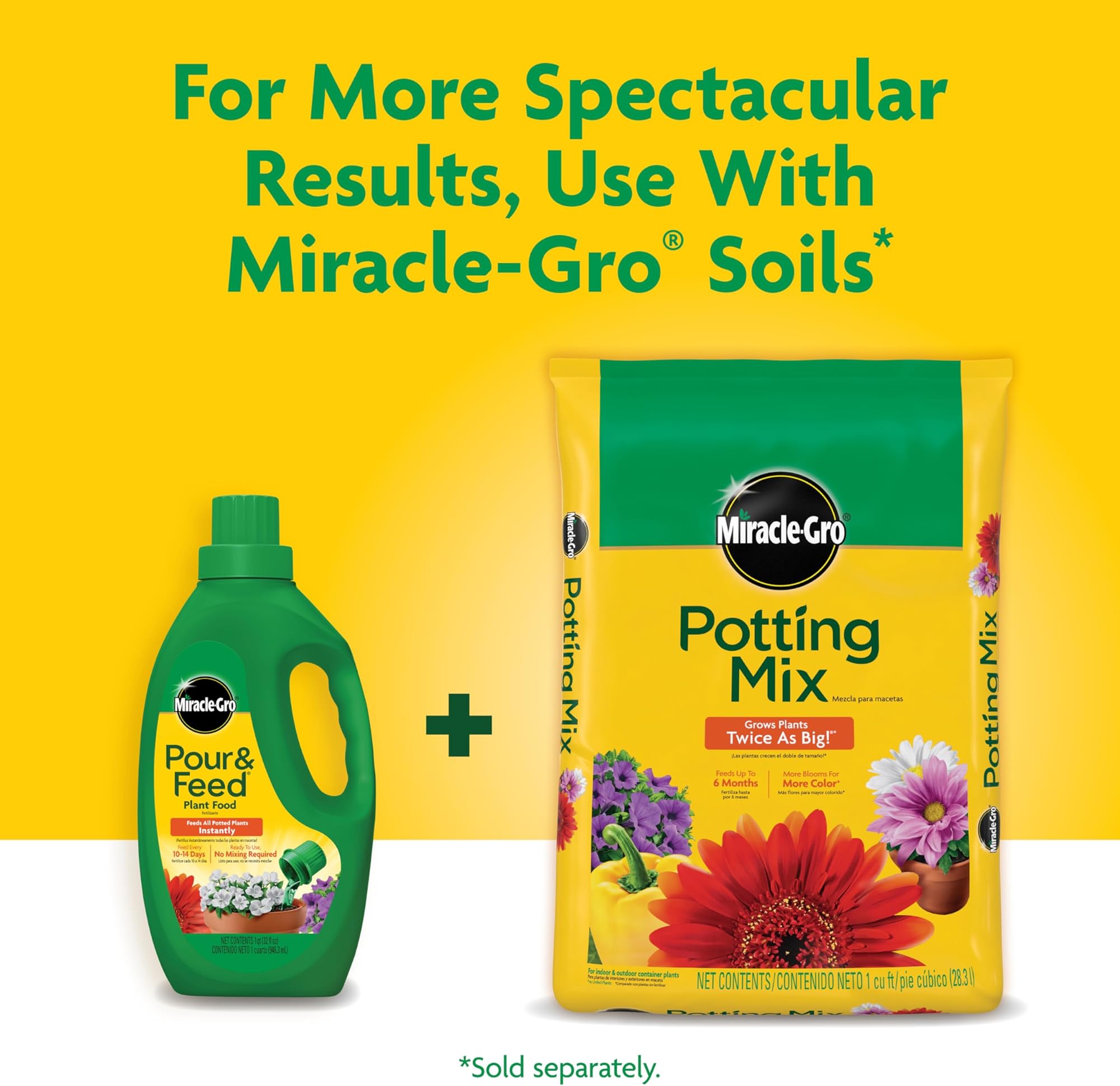 הזינו באופן מיידי את כל צמחי העציצים עם מזון צמחים Miracle-Gro Pour & Feed. מזון צמחים מוכן לשימוש זה מיושם ישירות על האדמה - אין צורך לערבב עם מים. הזינו צמחים במיכלים חיצוניים ופנימיים כל 1-2 שבועות ותיהנו מצמחים חזקים בעזרת Miracle-Gro.