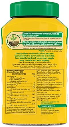 מזון הצמחים הרב-תכליתי Miracle-Gro Shake 'n Feed מנוסח במיוחד כדי לסייע בגידול צמחים חזקים, תוססים ופרודוקטיביים יותר (בהשוואה לצמחים שלא נותנו מזון). הוא מכיל מיקרו-נוטריינטים חיוניים, בתוספת מרכיבים טבעיים, להזנה מעל ומתחת לאדמה. מנוסח עם אצות קלפ, יציקות תולעי שלשול, קמח נוצות וקמח עצמות בחלקיק הכל-באחד כדי להזין חיידקים בקרקע. חיידקים מפרקים מרכיבים טבעיים לחומרי הזנה התומכים בחוזק ובהתפתחות השורשים, מה שמגביר את יעילות המים. ניתן להשתמש במזון הצמחים הרב-תכליתי Miracle-Gro Shake 'n Feed בכל מקום: באדמה ובמיכלים להאכלה עד 3 חודשים. האכילו את הצמחים שלכם בעזרת מזון הצמחים הרב-תכליתי Miracle-Gro Shake 'n Feed.