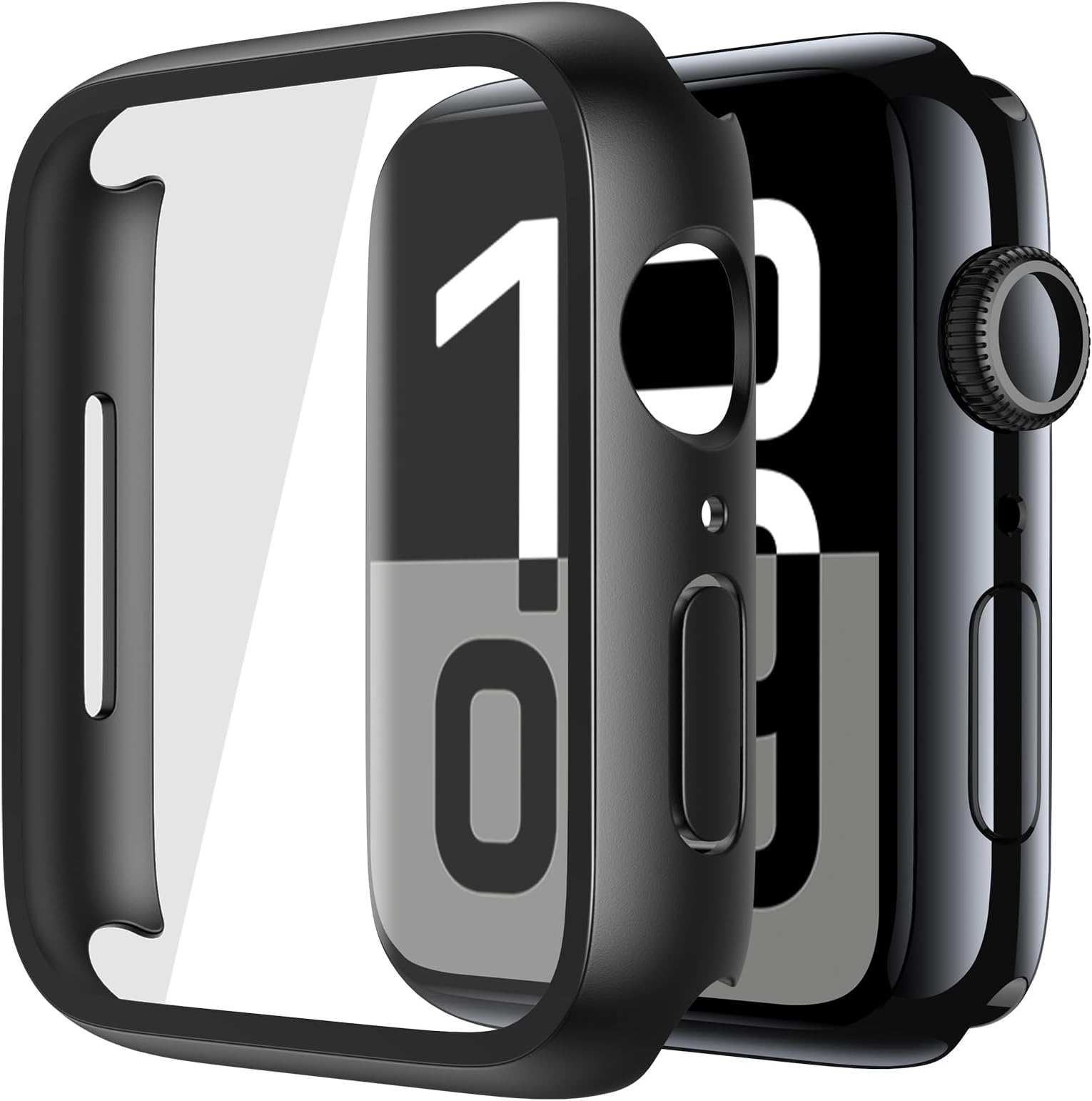 - 【הגנה משופרת מפני שריטות】 כיסוי זה לשעון אפל 11/10, העשוי מחומר PC חזק וכולל זכוכית מחוסמת מובנית, מציע כיסוי מלא מלפנים ולקצה, ומספק לשעון ה-iWatch שלך הגנה מלאה מפני בלאי יומיומי, כולל שריטות, נפילות ופגיעות.