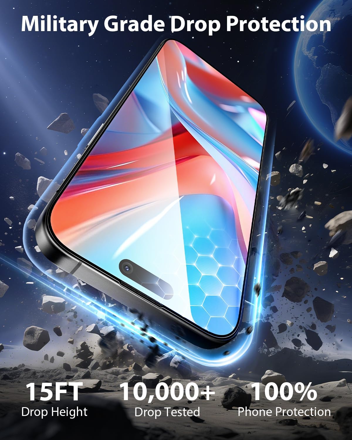 מגני מסך Mkeke לאייפון 15 פרו מקס מארז 3 [זכוכית מחוסמת 9H+] [הגנה מפני נפילות ברמה צבאית 15 רגל] כיסוי מלא ועמיד בפני זעזועים 6.7 אינץ'