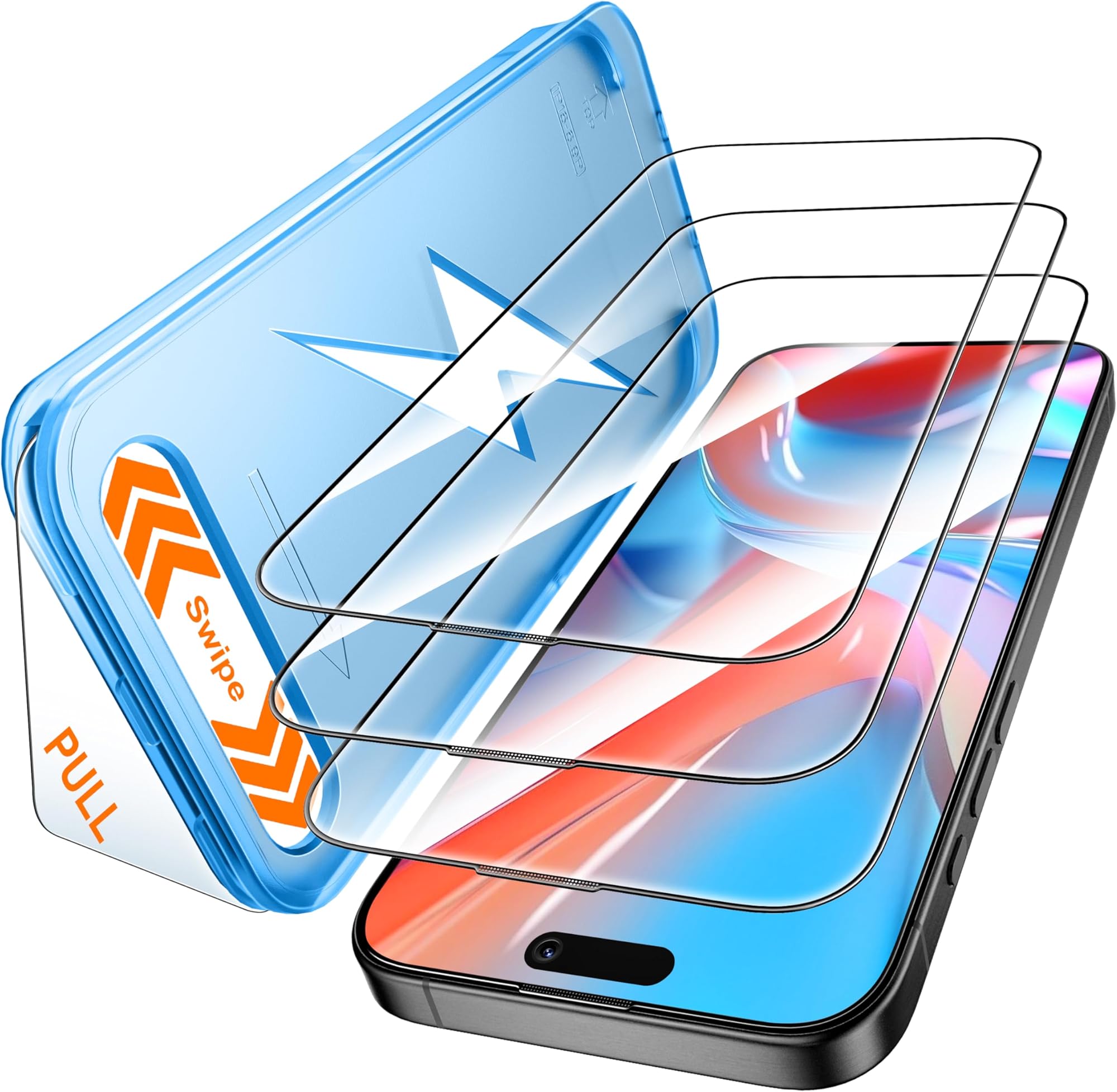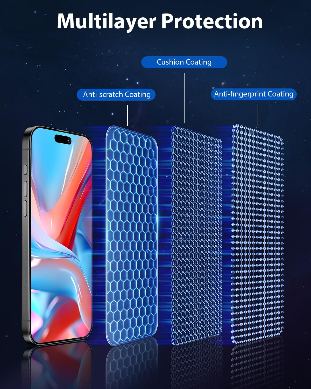 - 【חבילה כוללת】3 מגני מסך לאייפון 15 פרו מקס, מסגרת התקנה, ערכת ניקוי ומדריך הוראות