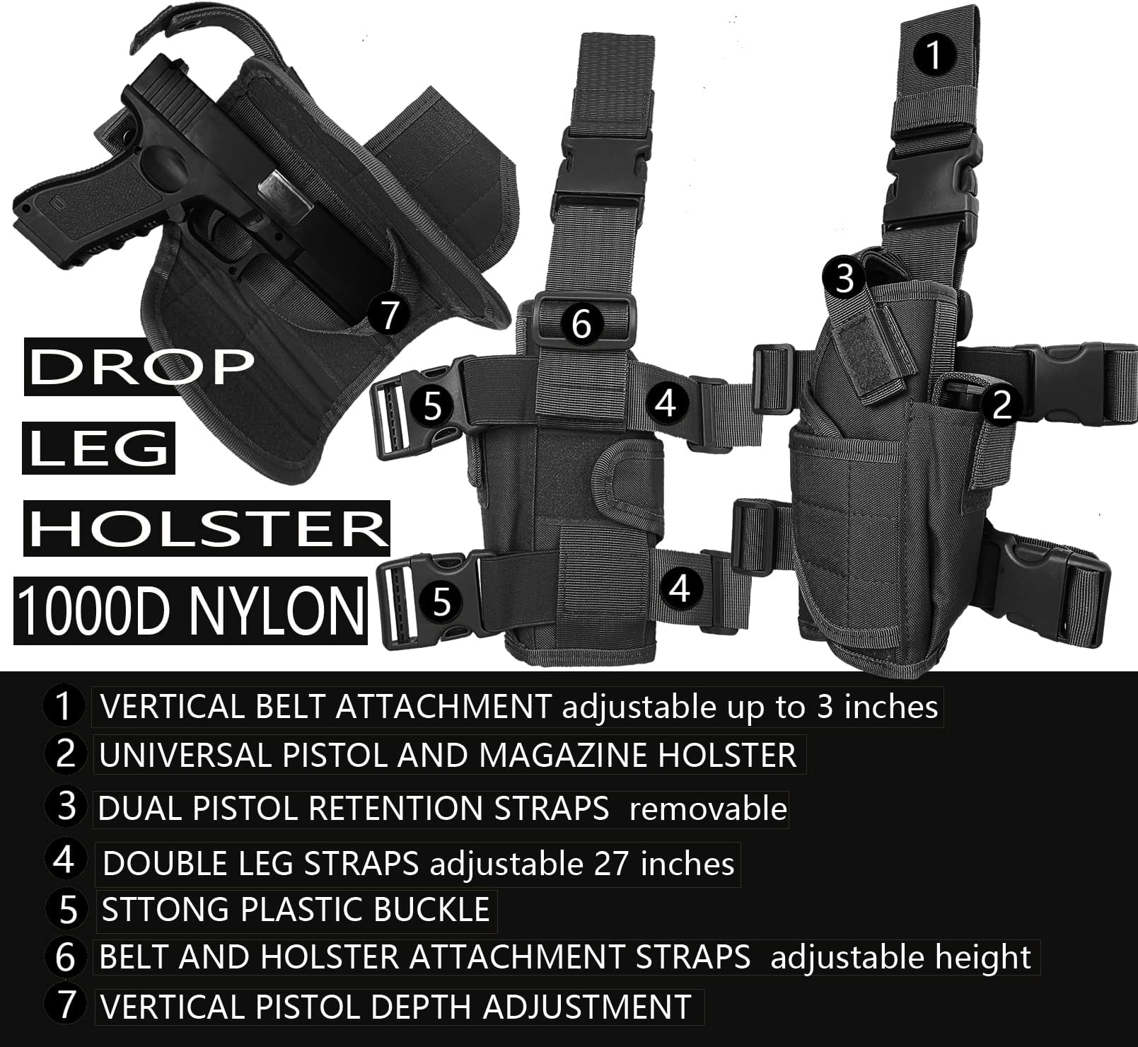- 【נוחות ובטיחות】 – רצועות הירך הכפולות המתכווננות במלואן של נרתיק זה לאקדח וגב מונע החלקה מבטיחים שהנשק שלך יישאר מאובטח על הרגל. אידיאלי למפעילים או לאנשים בחוץ שרוצים לשאת נשק בנוחות. זחל, רוץ, קפץ, טפס ונו בחופשיות מבלי לדאוג שהנשק ייפול.