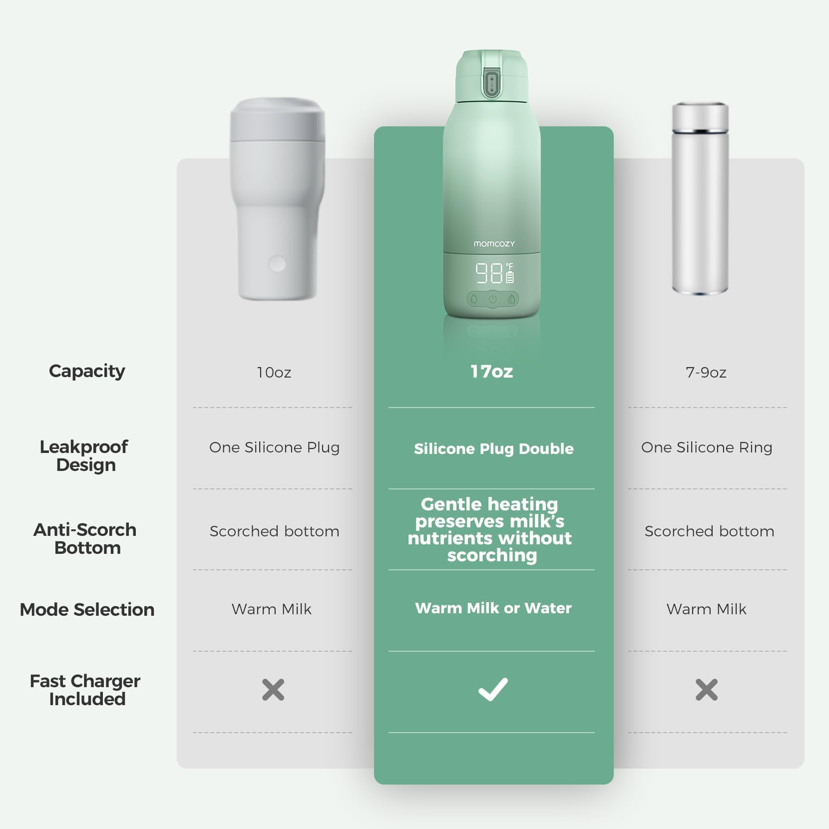 מחמם חלב נייד לנסיעות של Momcozy - מצבי חימום כפולים לחלב אם ומים, מחמם בקבוקים נייד עם חימום מהיר וחיי סוללה ארוכים, קיבולת גדולה של 17 אונקיות כדי לענות על הצרכים שלך לאורך כל היום