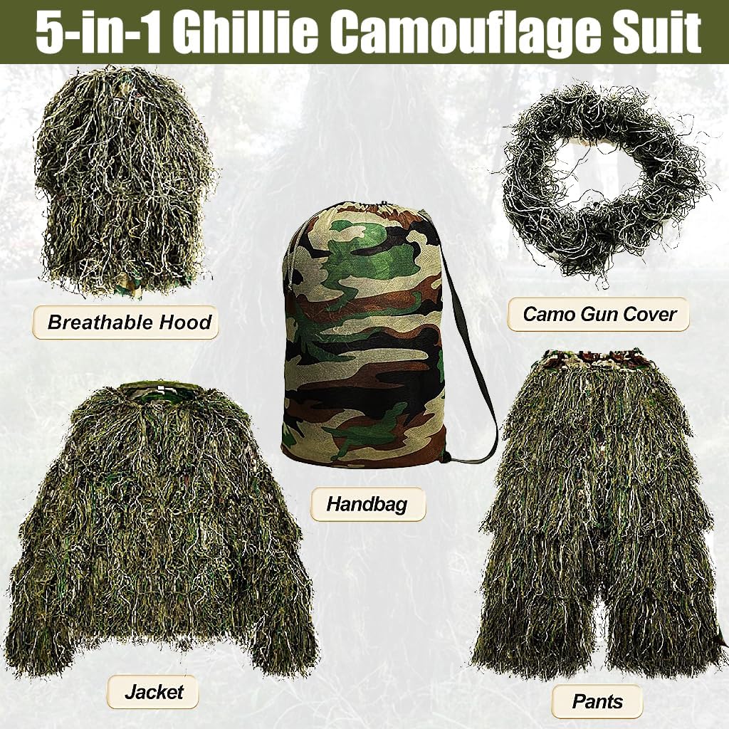 - שימושים רחבים: חליפת Mophotoghillie, עשויה מפוליאסטר קשיח ועמיד וחוט סינתטי, אידיאלית לציד, ירי, פיינטבול, איירסופט, צילום חיות בר, צפרות וליל כל הקדושים. היא אידיאלית לכל מצב בו נדרשת הסוואה יעילה.