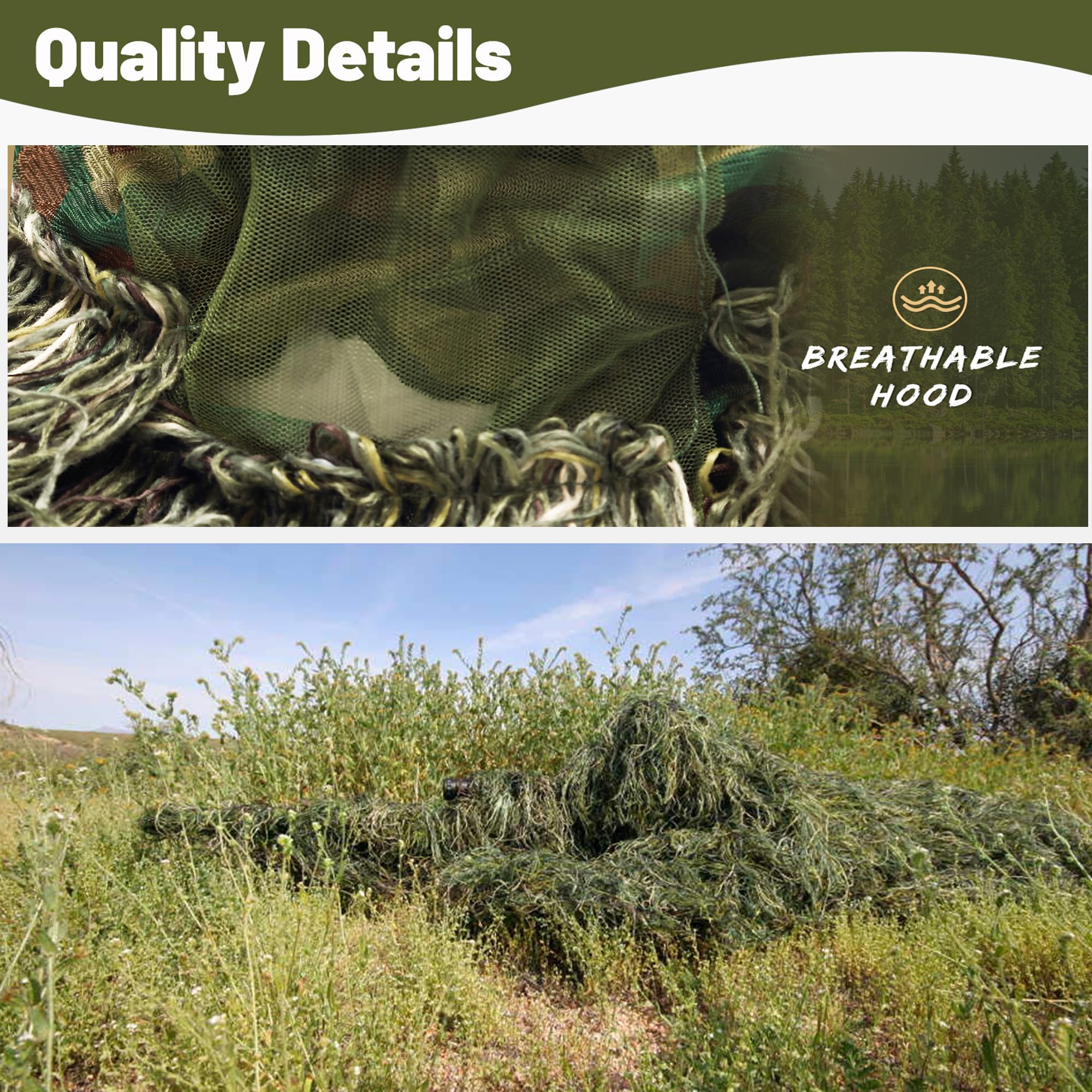 - נוחות ונשימה: חליפת הגילי של Mophoto, העשויה מפוליאסטר איכותי ונושם, מציעה נוחות וזרימת אוויר מצוינת ללבישה ממושכת במהלך פעילויות חוץ.