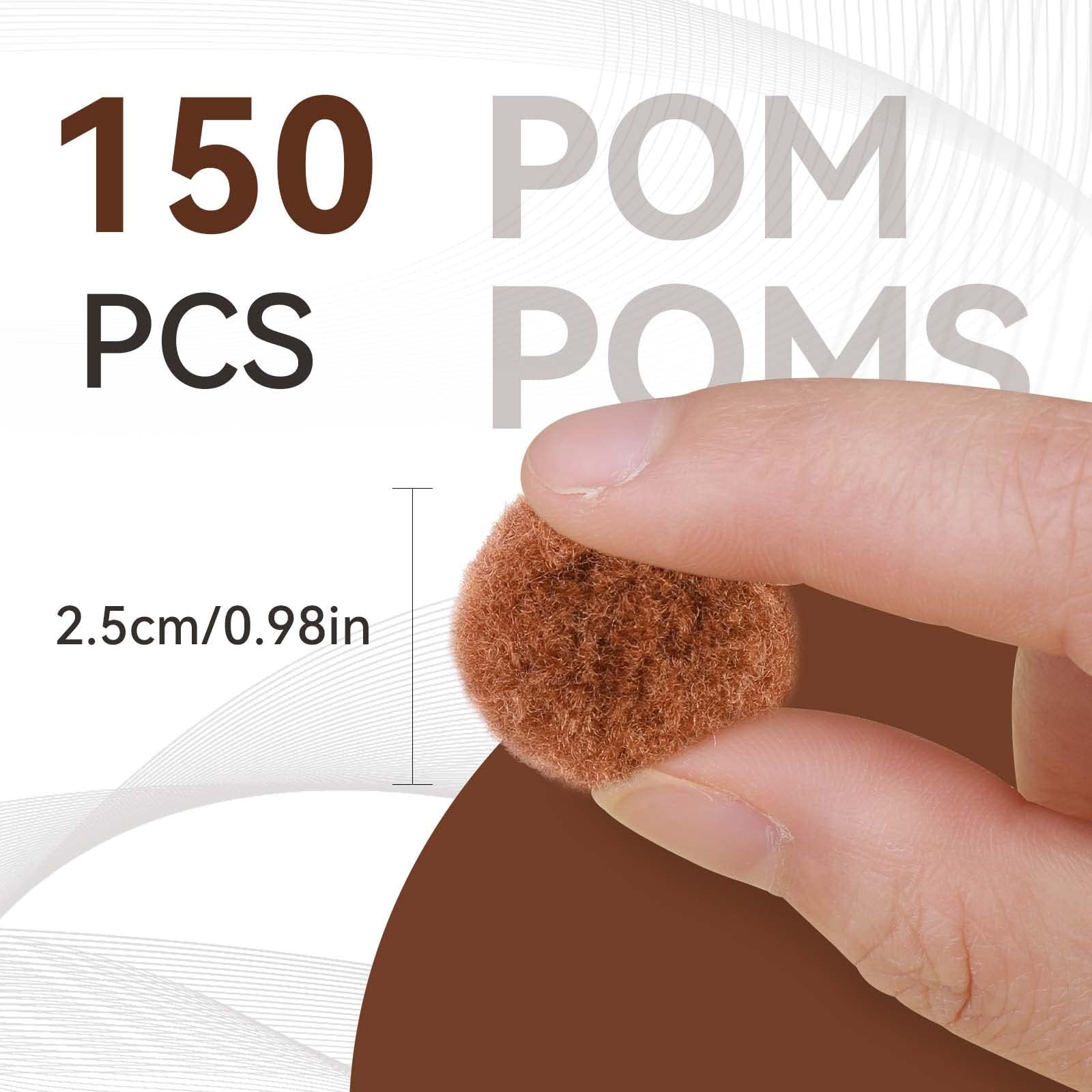 מורפן 150 יחידות פונפונים חומים בהירים, כדורי פומפונים פוזיים בגודל 2.5 ס"מ לפרויקטים של יצירה, קישוטי בית ויום הולדת
