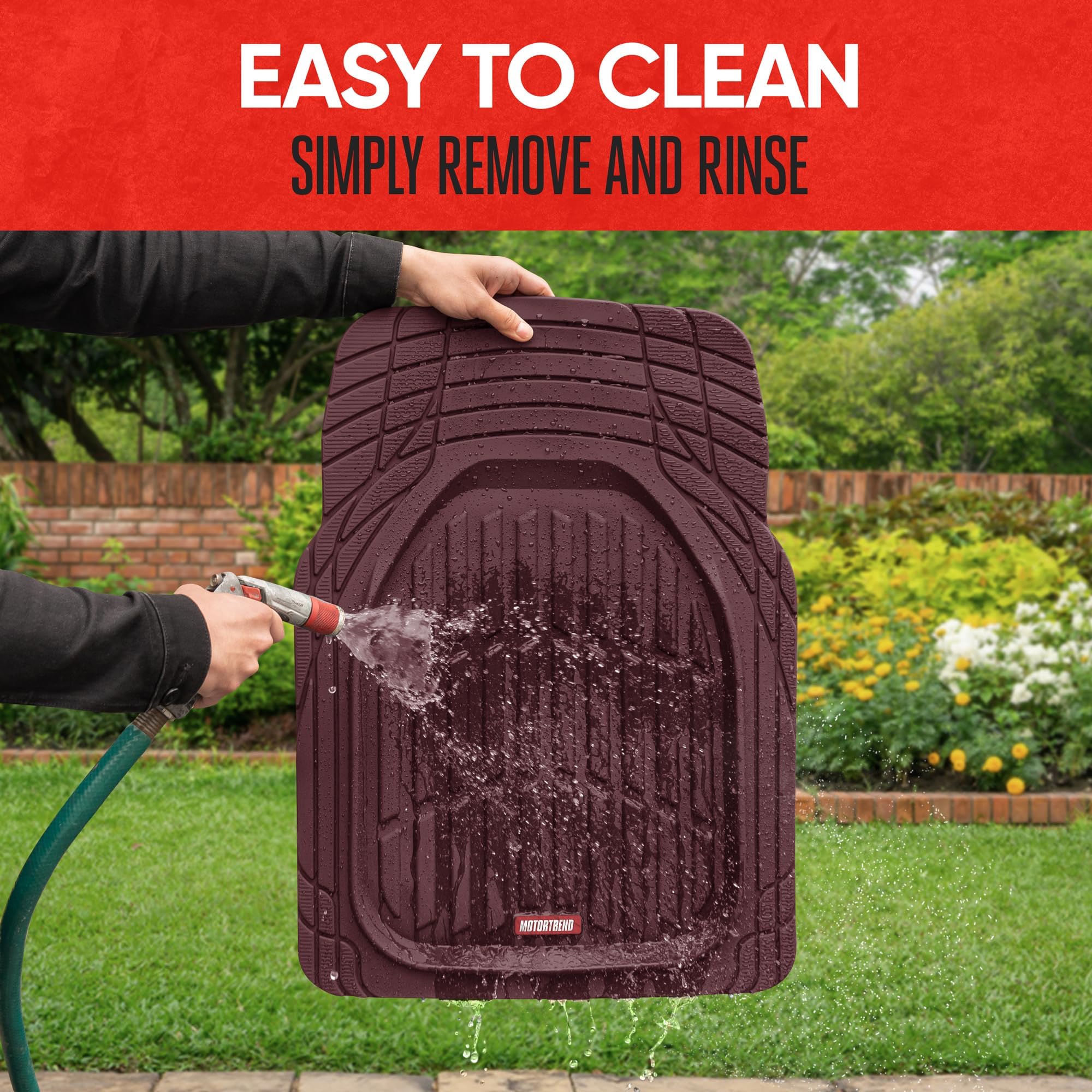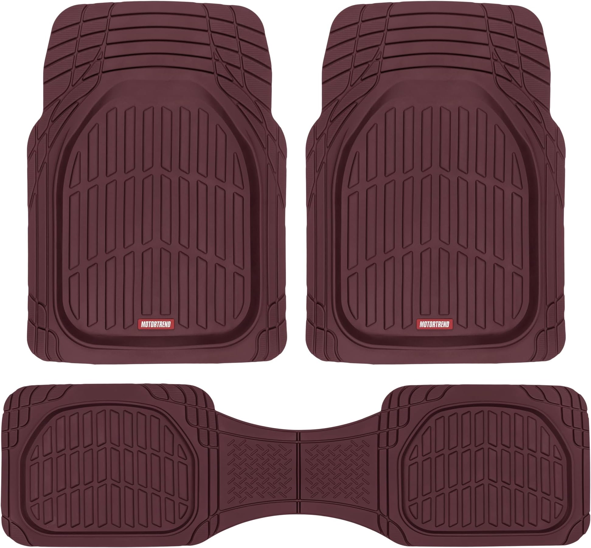 שטיחי רצפה FlexTough לרכב של Motor Trend, שטיחי רכב לכל מזג אוויר בצבע בורדו עמוק, שטיחי Trim-To-Fit עמידים למים לרכב, מכוניות, משאיות, SUV, אביזרי ריפוד אוניברסליים