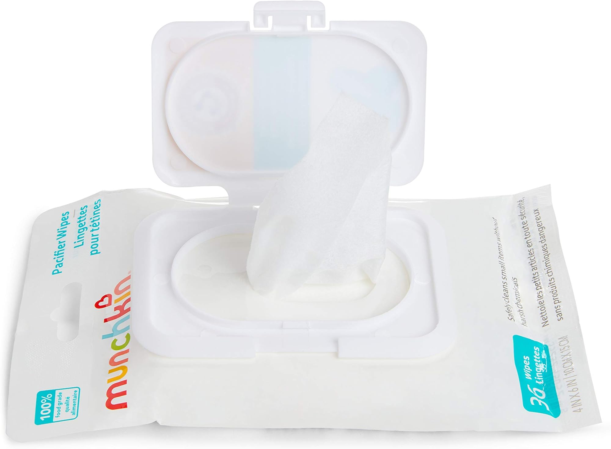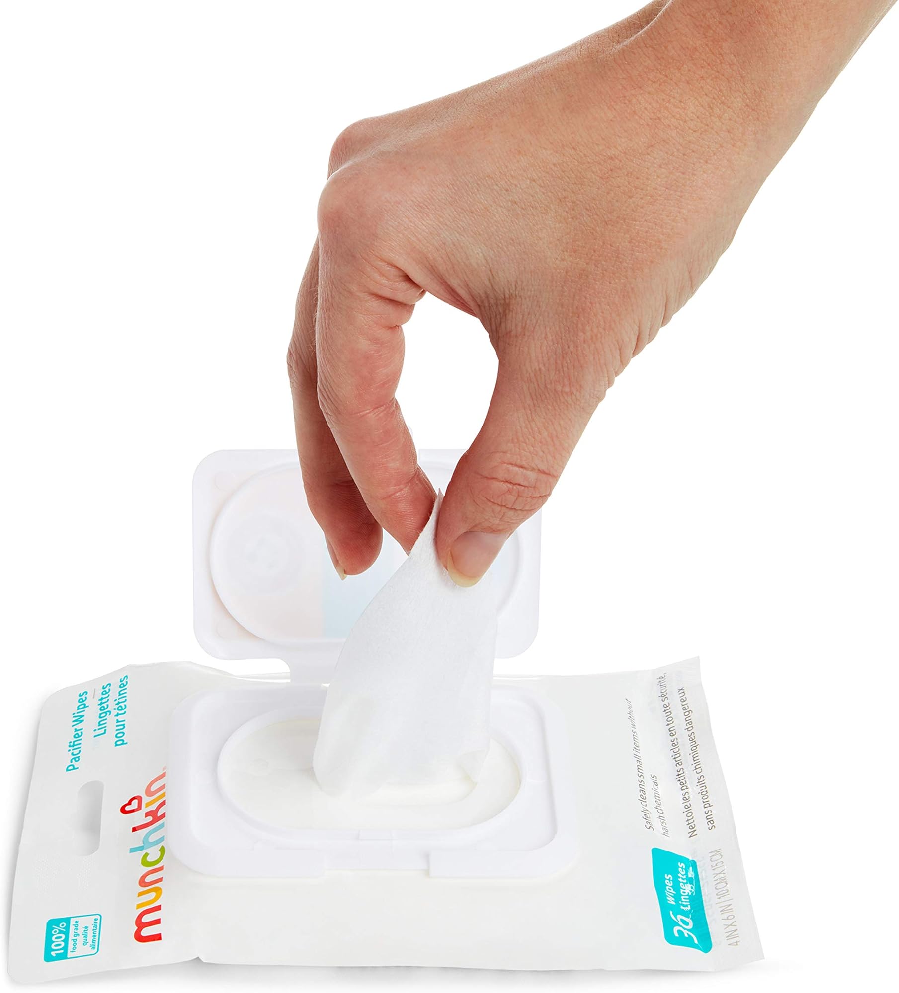 מגבונים למוצץ Munchkin Arm & Hammer - מנקים בבטחה חלקי משאבת חלב וציוד חיוני להאכלה לתינוקות ופעוטות, חבילה של 2, 72 מגבונים