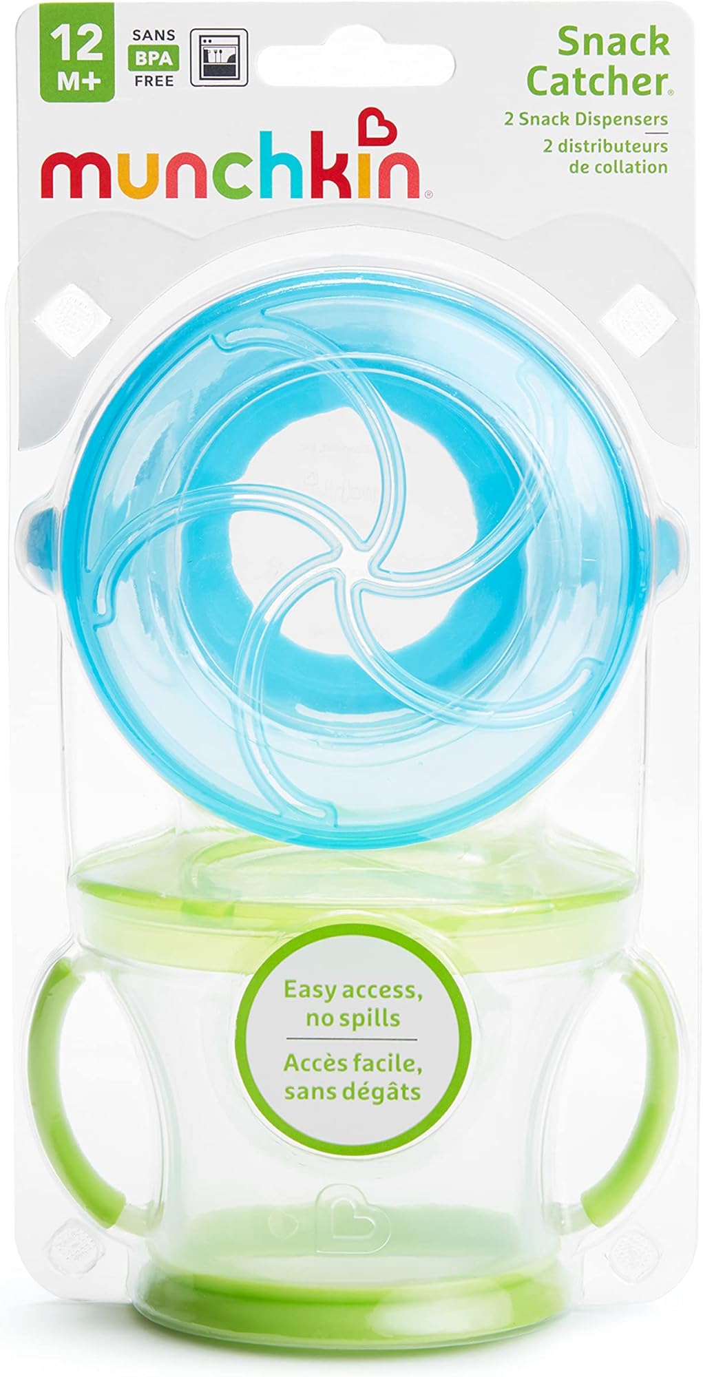 כוסות חטיפים לפעוטות של Munchkin Snack Catcher, ללא שפיכה, חבילה של 2, כחול/ירוק