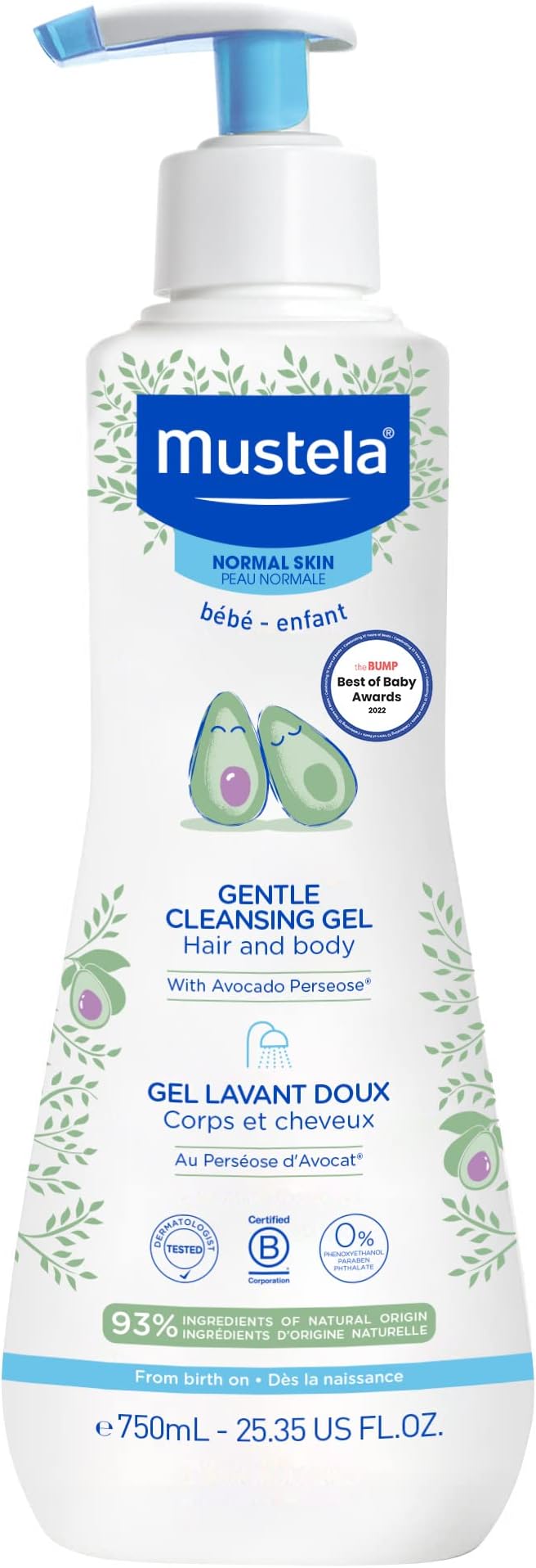 ג'ל ניקוי עדין לתינוקות של מוסטלה - סבון שיער וגוף לתינוקות - עם אבוקדו טבעי מועשר בוויטמין B5 - פורמולה מתכלה ביולוגית וללא דמעות - 25.35 אונקיות נוזל (חבילה של 1)