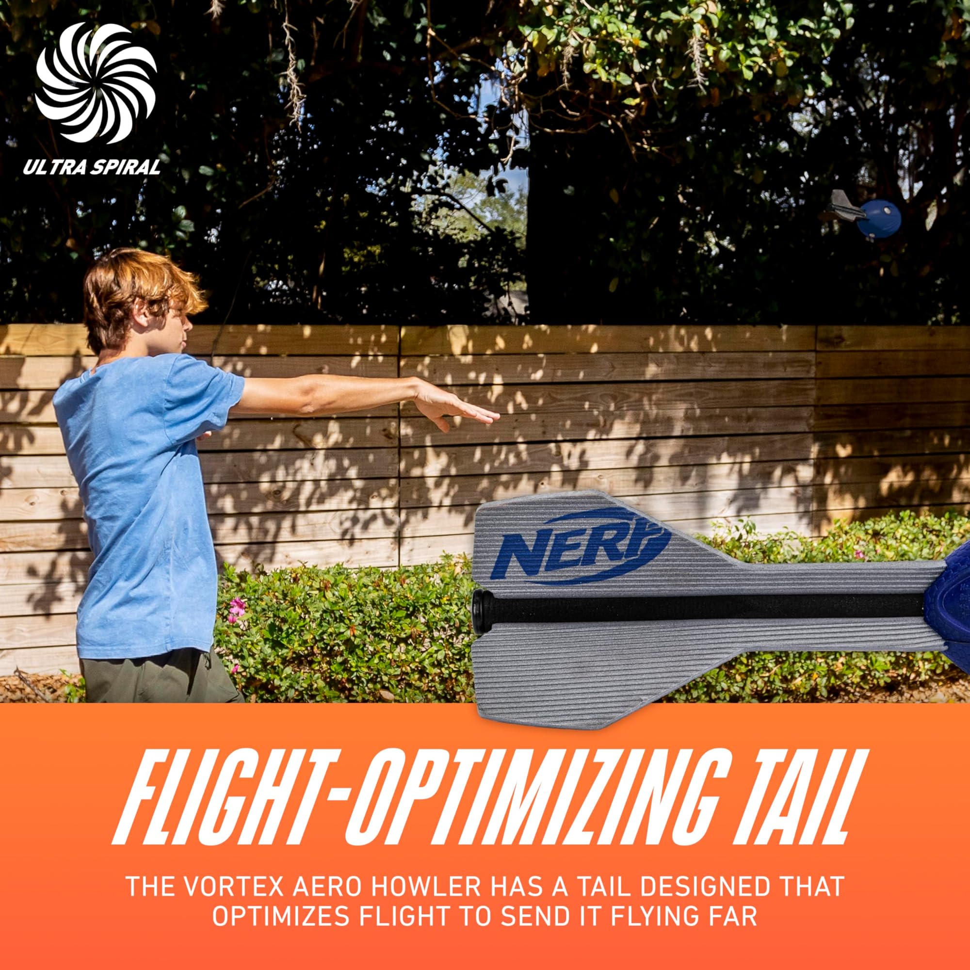 כדור קצף Nerf Vortex Aero Howler – כדורגל קלאסי למרחקים ארוכים – זנב לשיפור טיסה – ידית אחיזה – כיף פנימי וחיצוני (כחול)