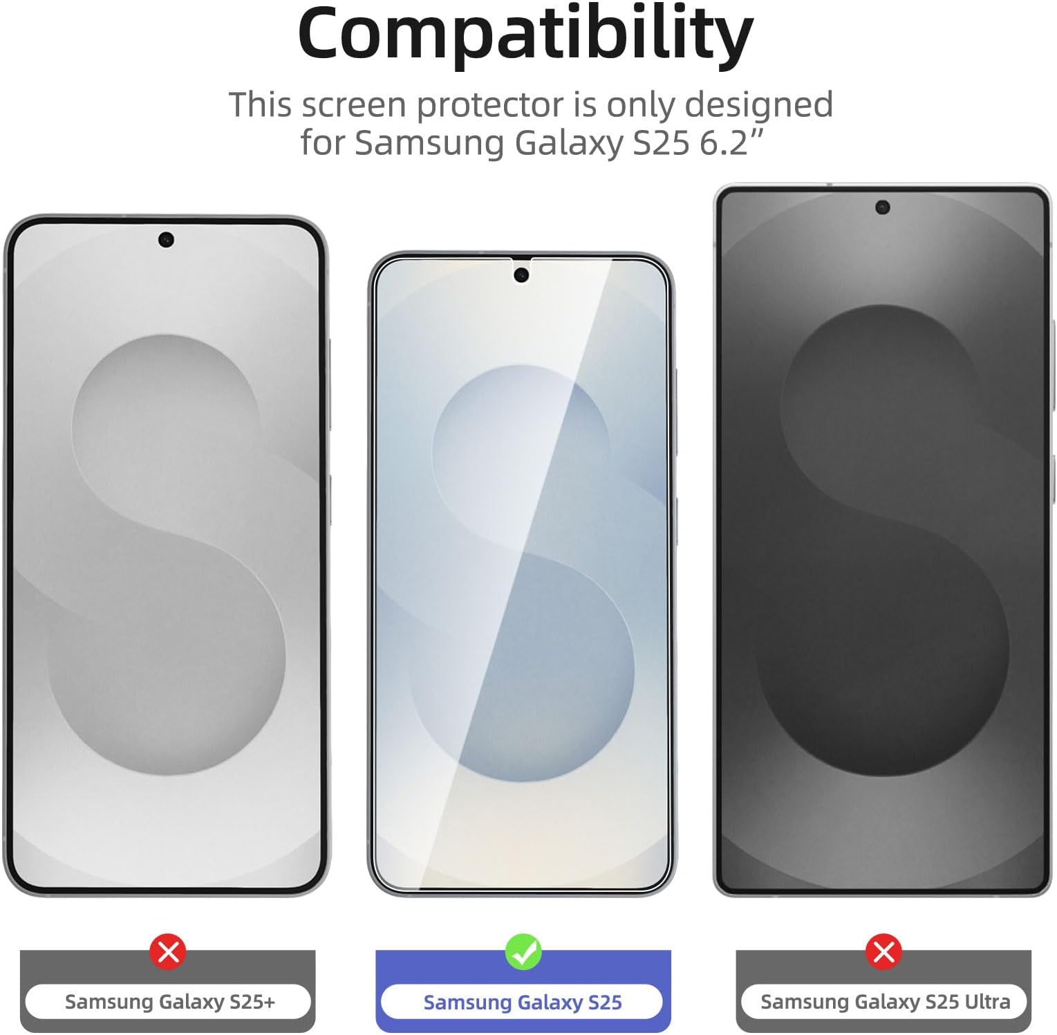 - מגן מסך זכוכית מחוסמת חדש לסמסונג גלקסי S25, מגע עדין: מצופה בגב בדבק סיליקון מוצק המקל על ההתקנה ומחבר את הסרט בחוזקה כדי לא לפגוע ברגישות מסך המגע.