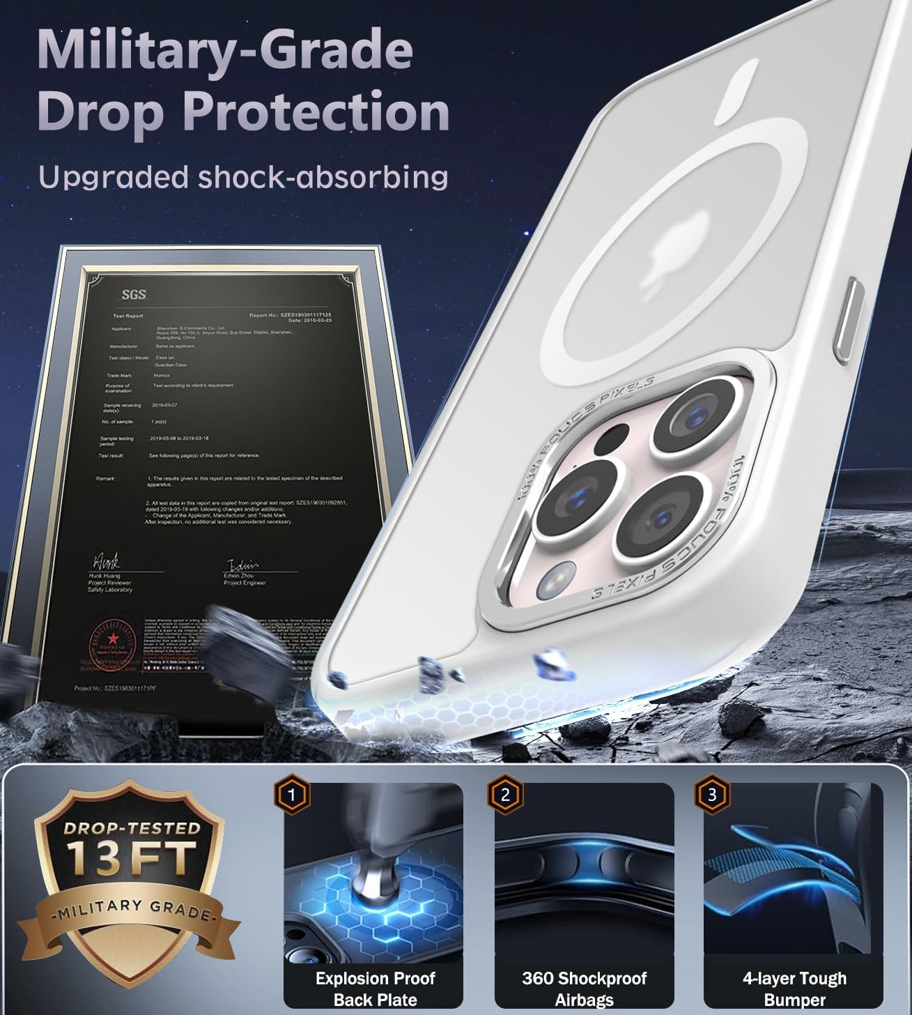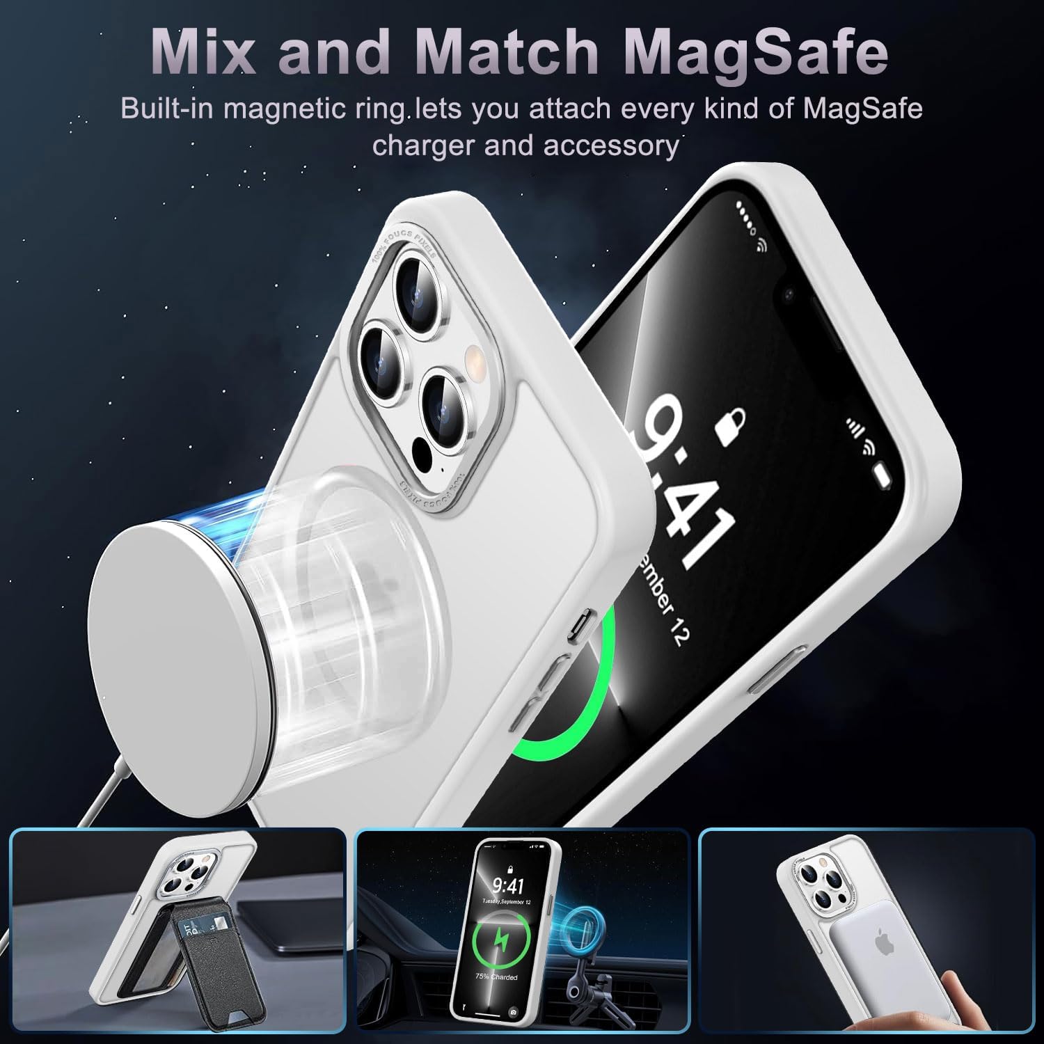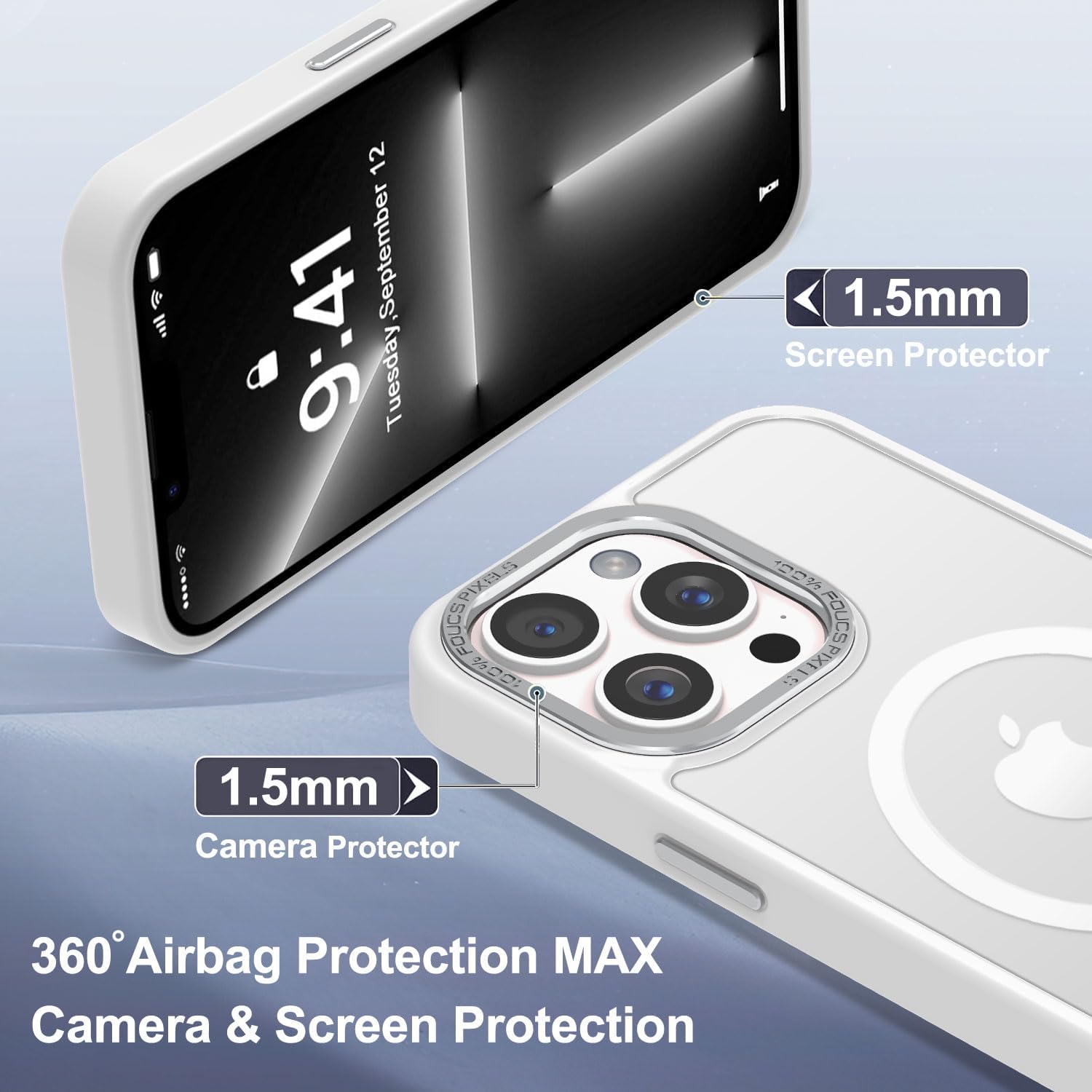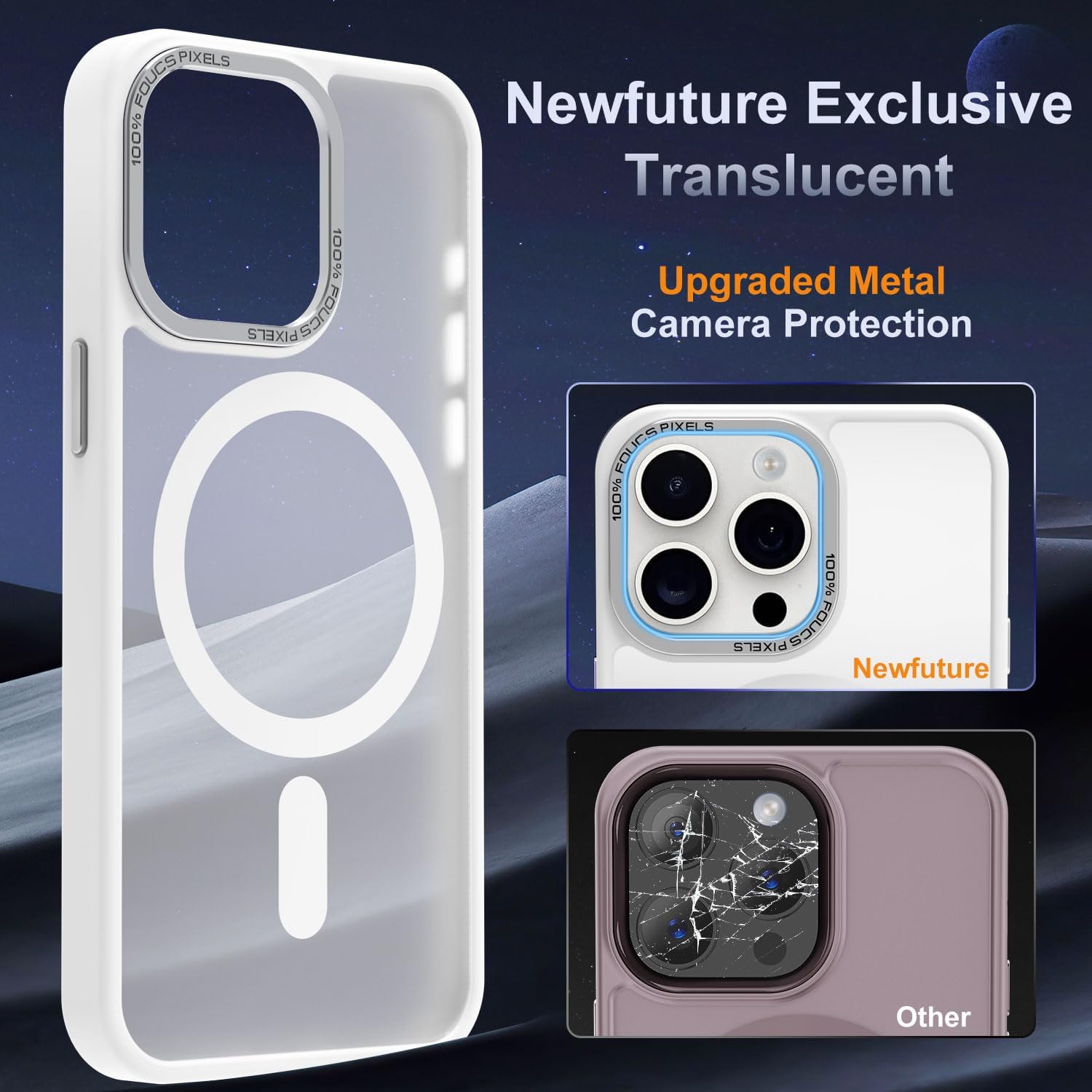 כיסוי Newfuture Designed לאייפון 13 פרו מקס עם מגן מגנטי [הגנה מפני נפילות צבאיות באורך 13 רגל] [תואם ל-Magsafe] כיסוי דק, שקוף, מט, עמיד בפני זעזועים ונוגדי טביעות אצבעות, לבן חלבי