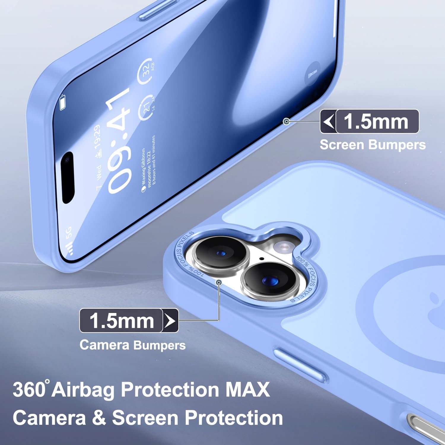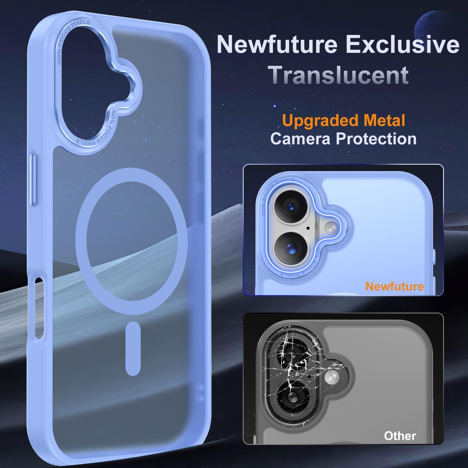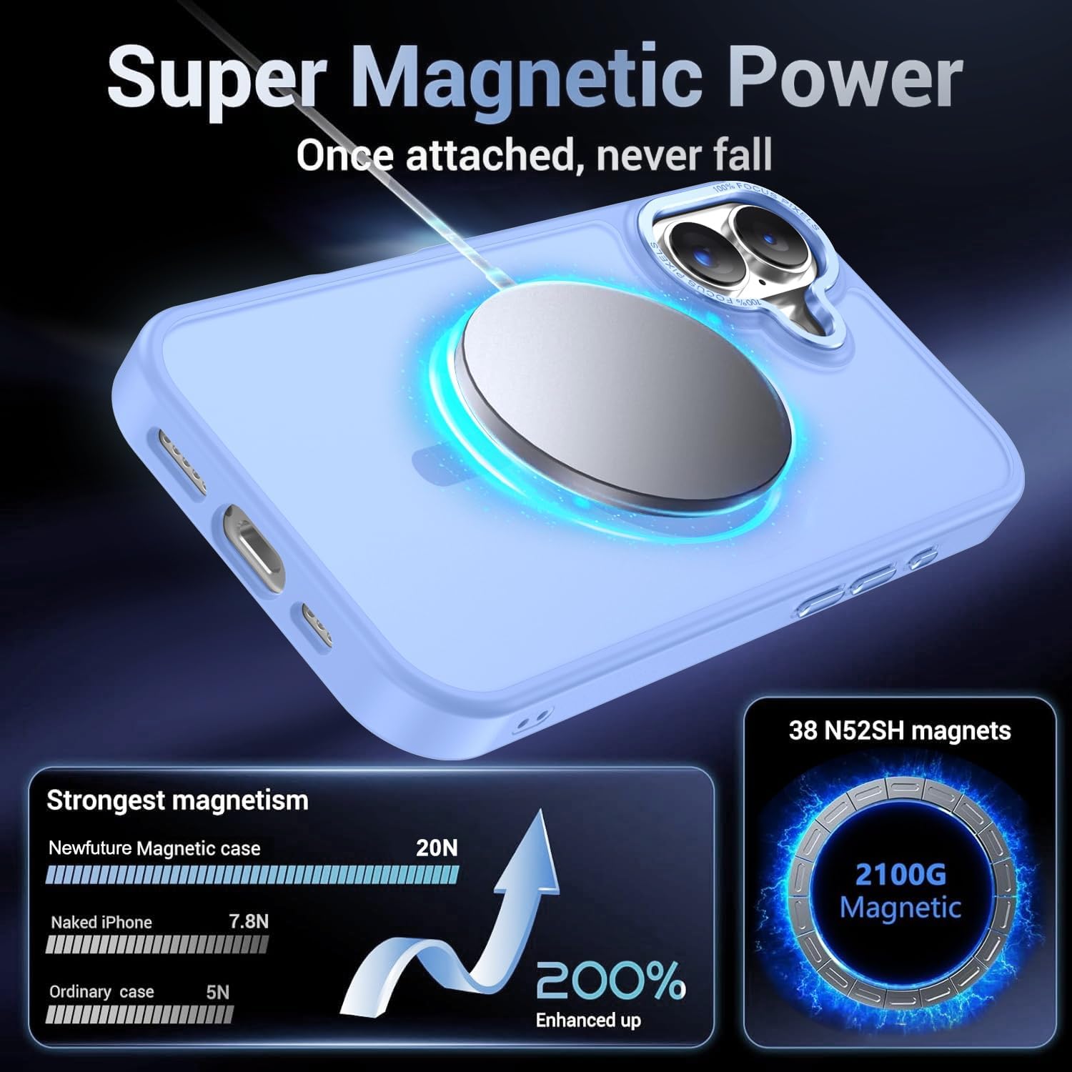 כיסוי מגנטי Newfuture לאייפון 17 [תואם ל-Magsafe] [הגנה מפני נפילות ברמה צבאית] כיסוי מגן מט שקוף נגד שריטות ועמיד בפני זעזועים לטלפון 6.3 אינץ', כחול