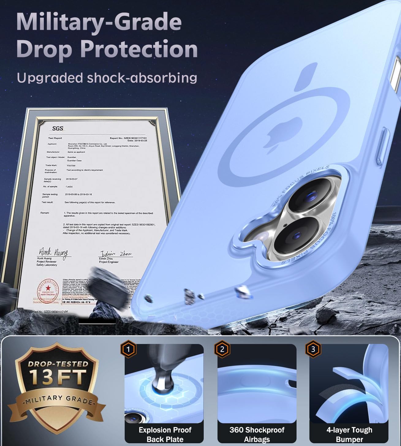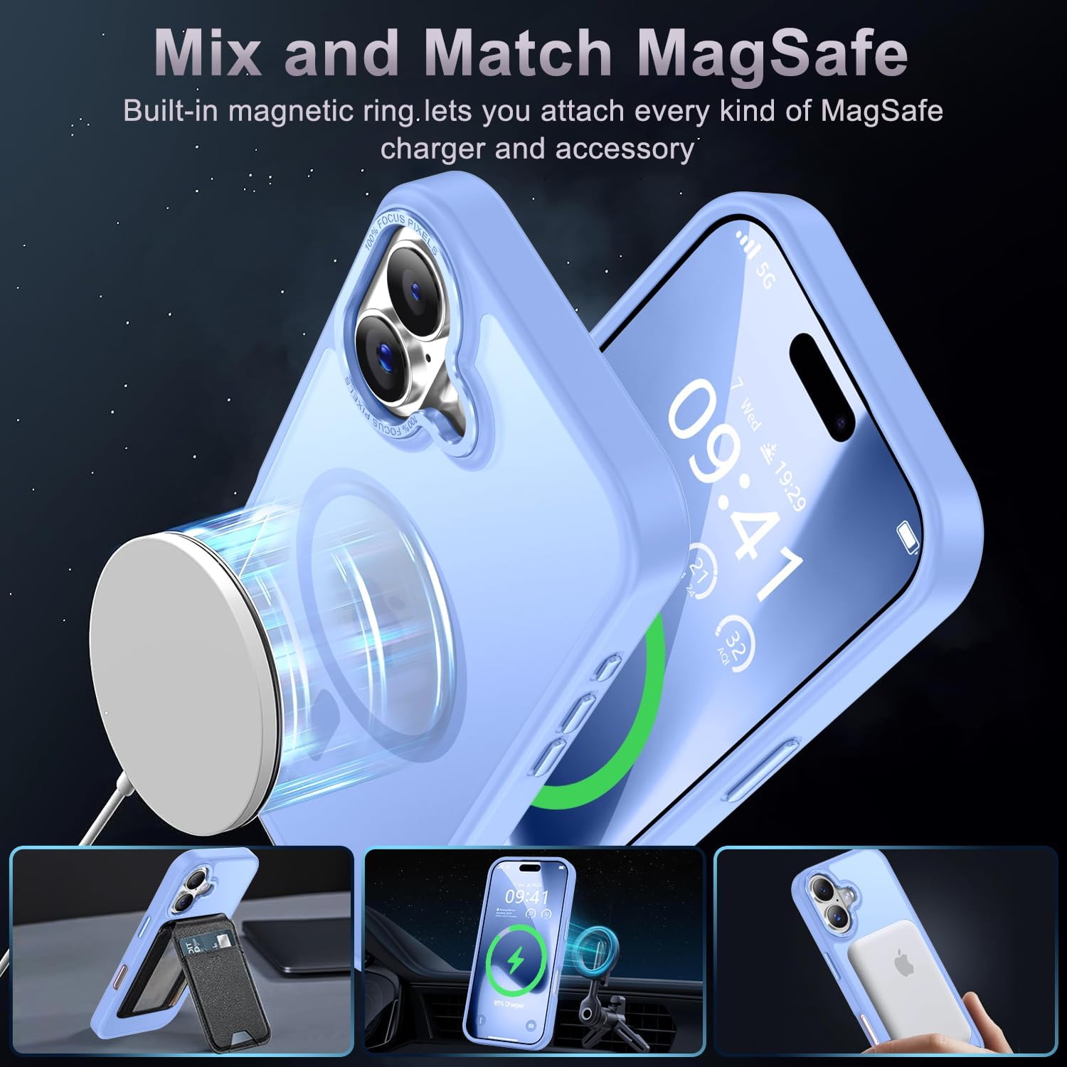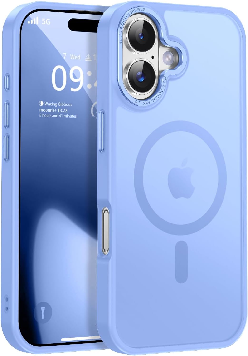 כיסוי מגנטי Newfuture לאייפון 17 [תואם ל-Magsafe] [הגנה מפני נפילות ברמה צבאית] כיסוי מגן מט שקוף נגד שריטות ועמיד בפני זעזועים לטלפון 6.3 אינץ', כחול