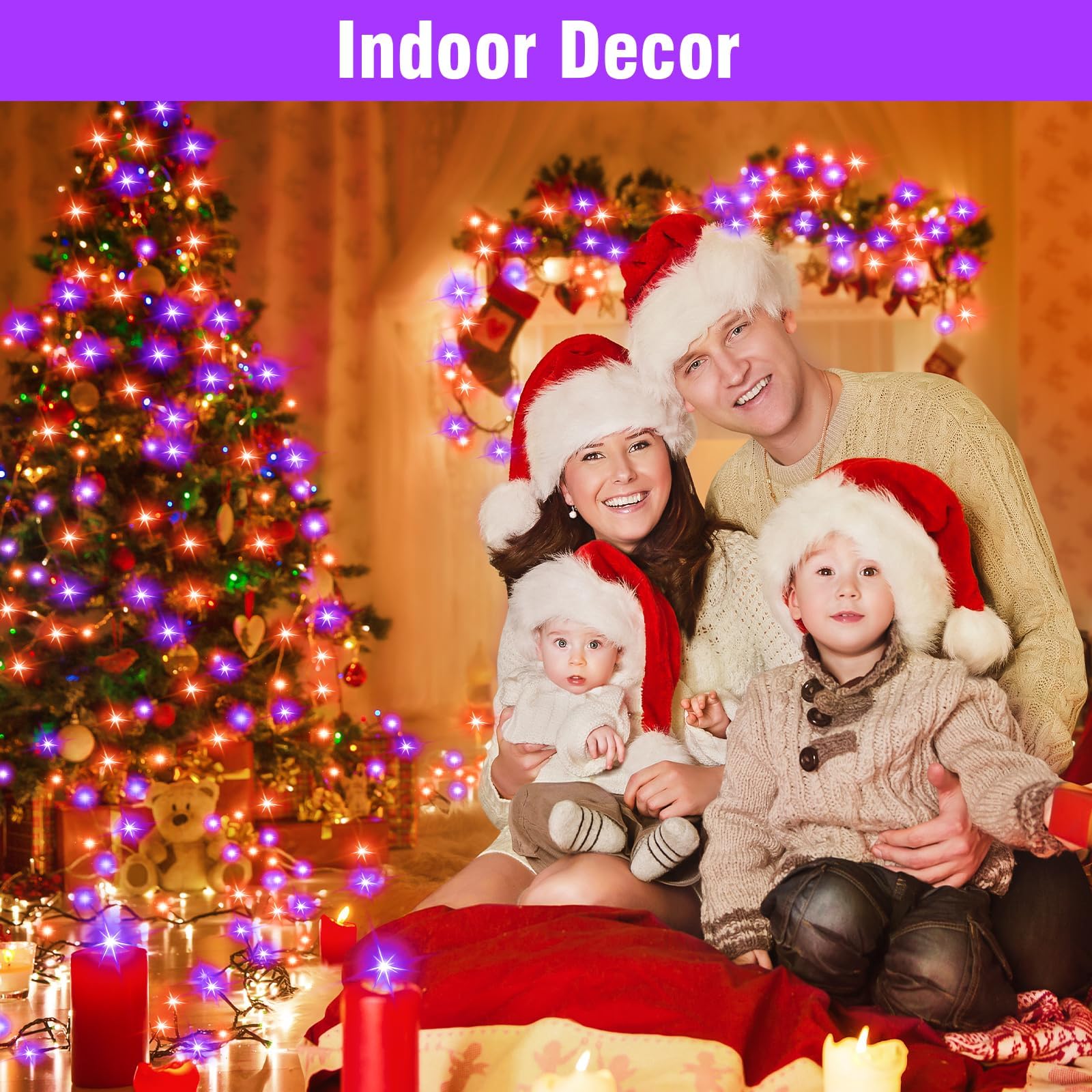 Nisocy 200 חוטי LED חיצוניים עמידים למים - אורות פיות סגולים כתומים עם תקע, אורות עץ חג המולד ניתנים לחיבור לפטיו, גינה, חדר שינה, חתונה, מסיבה, עיצוב (66 רגל)