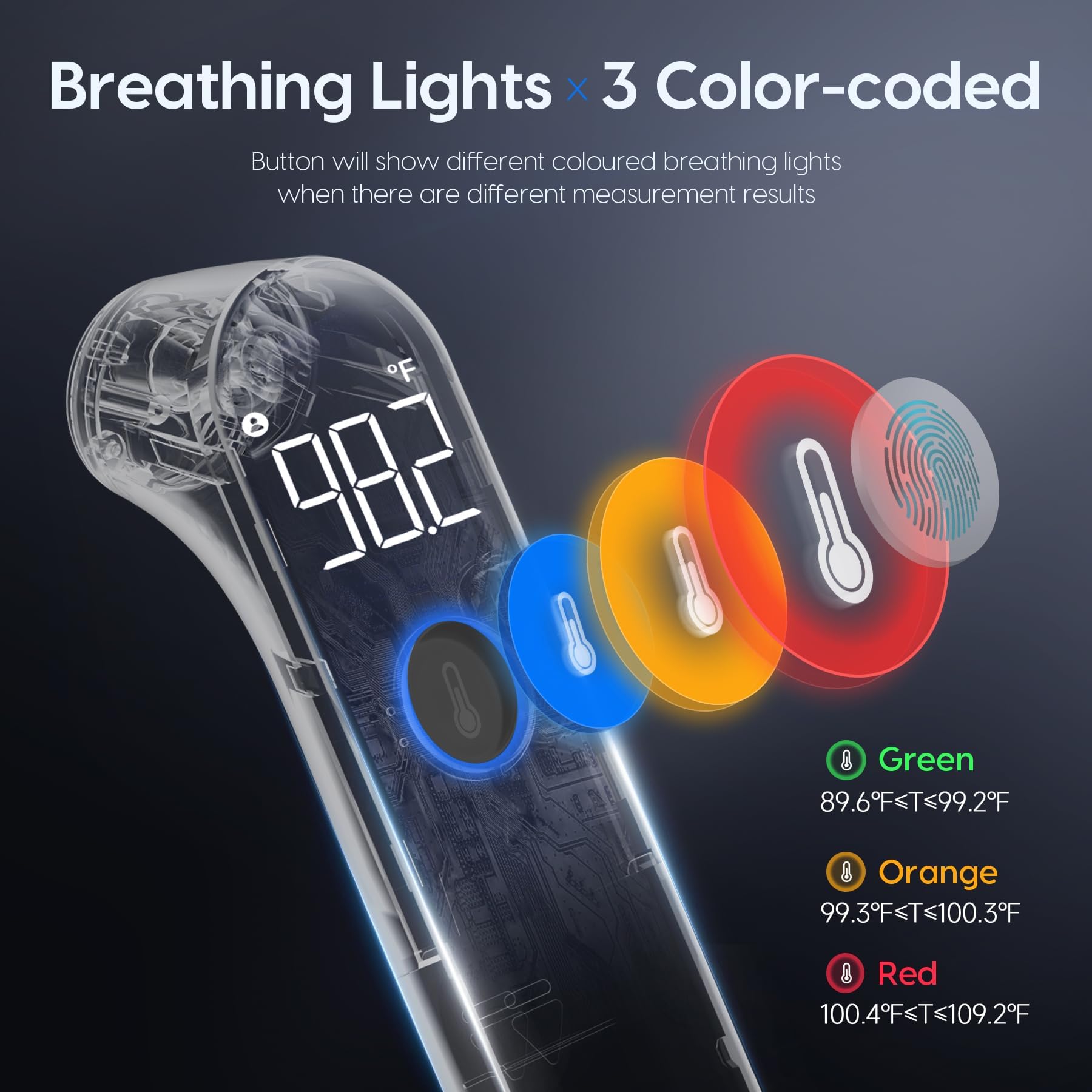 - קל לשימוש ולקריאה: מדחום דיגיטלי זה כולל צג LED גדול וברור במיוחד, המאפשר קריאת טמפרטורה קלה גם בחדרים מוארים באור עמום או בלילה. פשוט החזיקו את המדחום ליד המצח, לחצו על הכפתור, ובתוך שנייה אחת, קריאת הטמפרטורה תוצג על מסך ה-LED הגדול.
