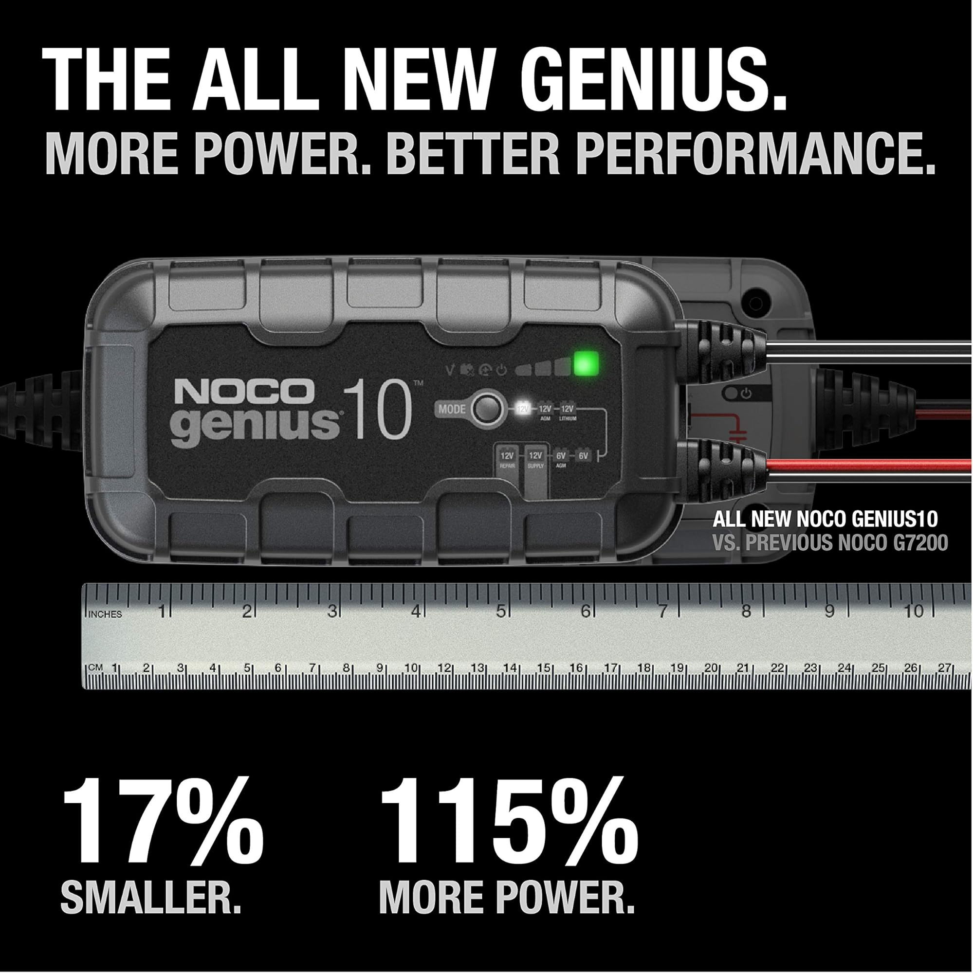 NOCO GENIUS10: 10A 6V/12V Smart Battery Charger – Automatic Maintainer, Trickle Charger & Desulfator with Overcharge Protection & Temperature Compensation – For Lead-Acid & Lithium Batteries