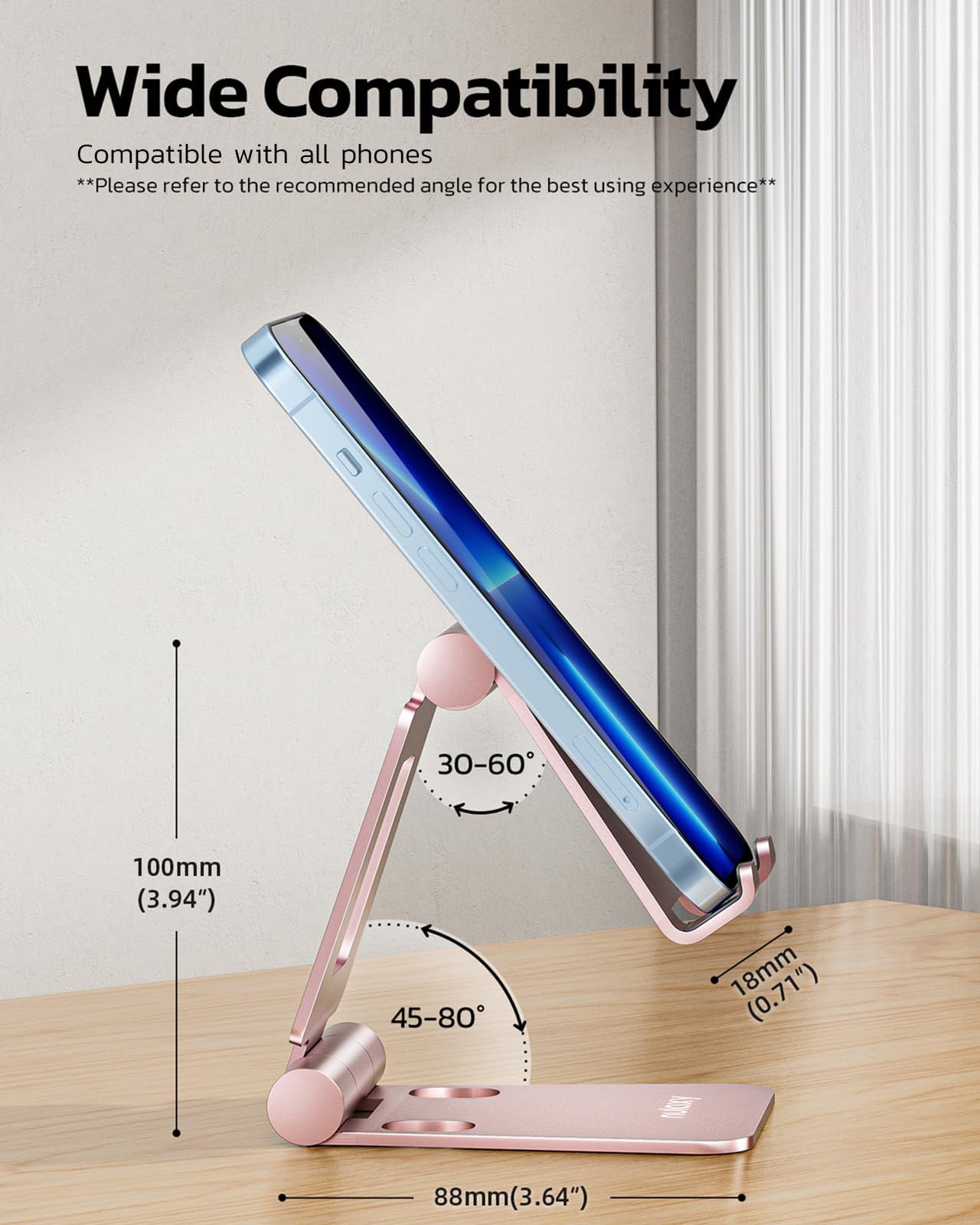 - מתכוונן ונייד: עריסת הטלפון מתקפלת לחלוטין, ניתן לכוונן אותה בקלות למיקום אידיאלי, וזהו אביזר שולחן טוב בזמן צפייה בוידאו, משחקי וידאו, ביצוע שיחות טלפון, צפייה במתכונים, שימוש ב-FaceTime.
