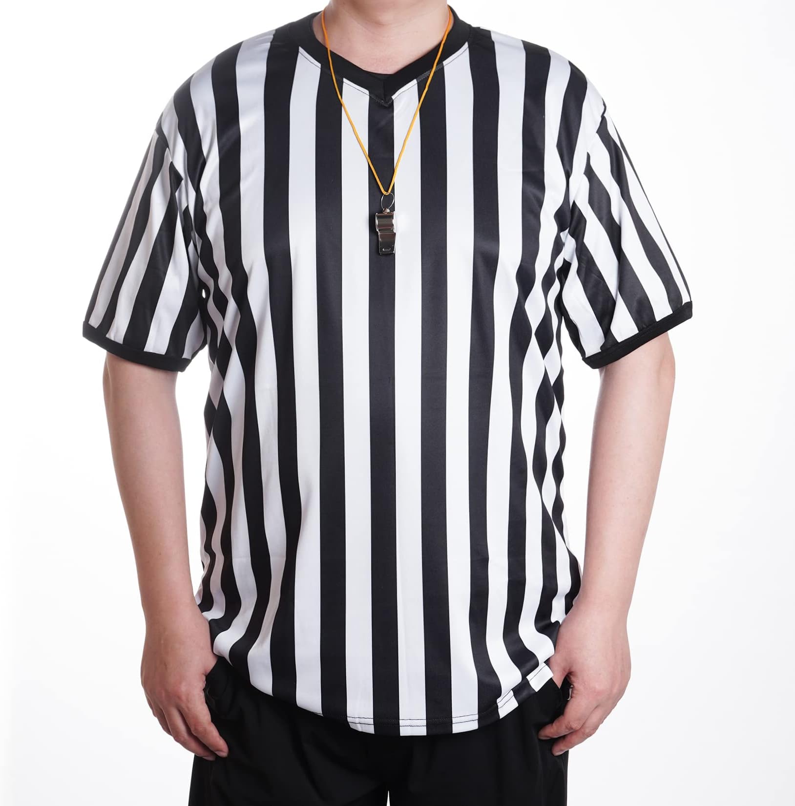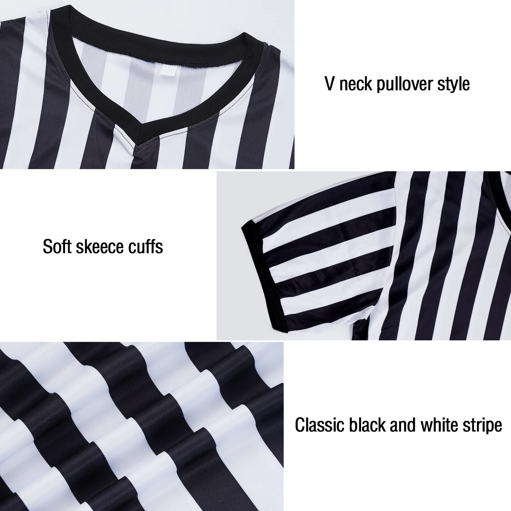 - חולצת שופט מקצועית: תחפושת שופט זו מעוצבת עם פסים שחורים ולבנים וצווארון V בסגנון סוודר, נראית קלאסית ומסוגננת, עוזרת לך להתבלט בקהל, להפוך אותך לשונה ותוסס יותר.