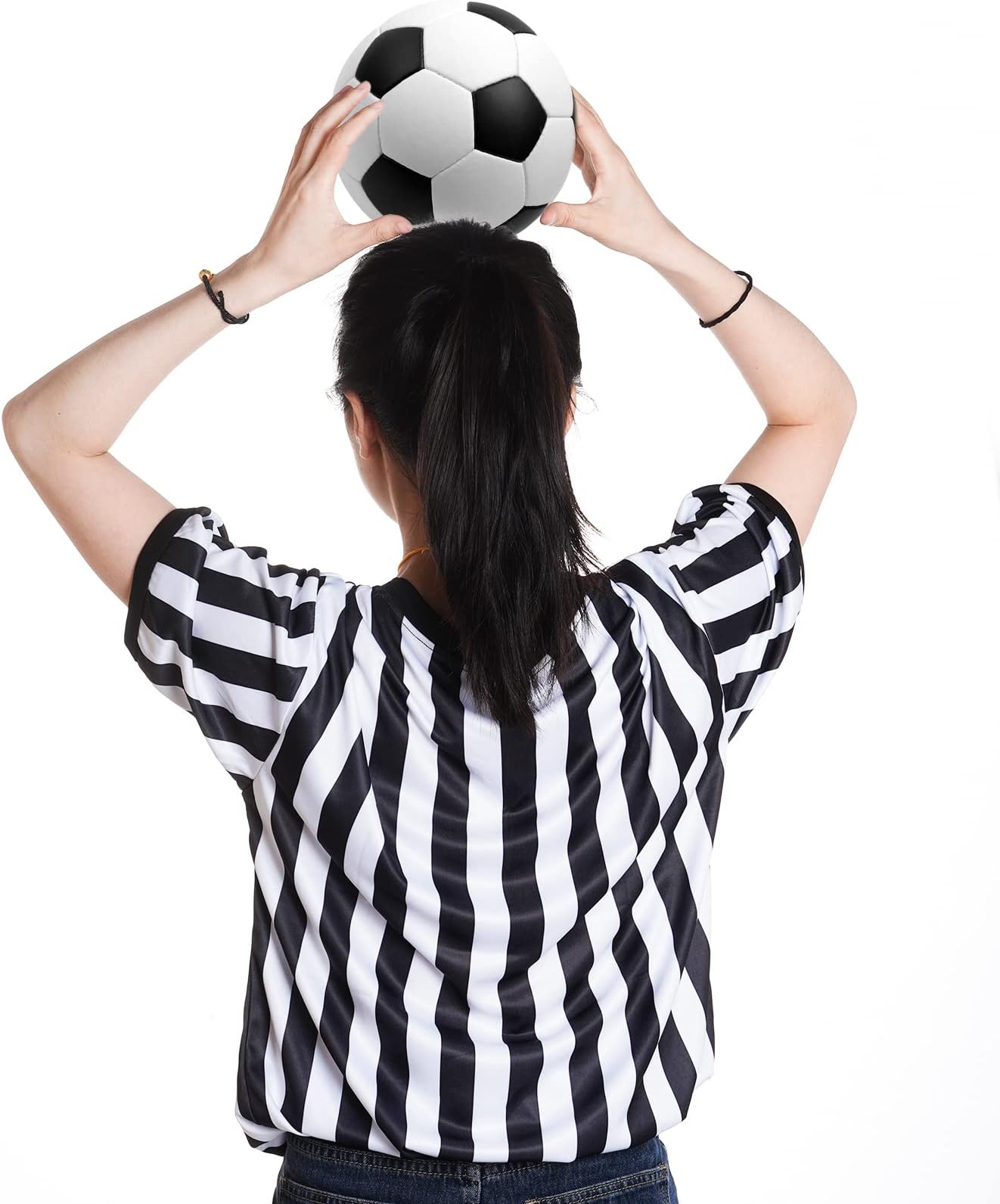 חולצת שופטת obmwang לנשים וגברים, חולצת שופטת פסים שחורה ולבנה עם צווארון V, מדי שופטת כדורגל ליל כל הקדושים