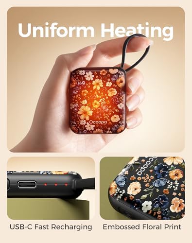 מחממי ידיים נטענים של Ocoopa UT5 Nano – מחמם כיס חשמלי דק, בקרת טמפרטורה חכמה, סוללה ל-14 שעות, בטיחות UL, פריטי חובה לנסיעות, מתנות לנשים, חג המולד, קמפינג, מתנות לגרביים