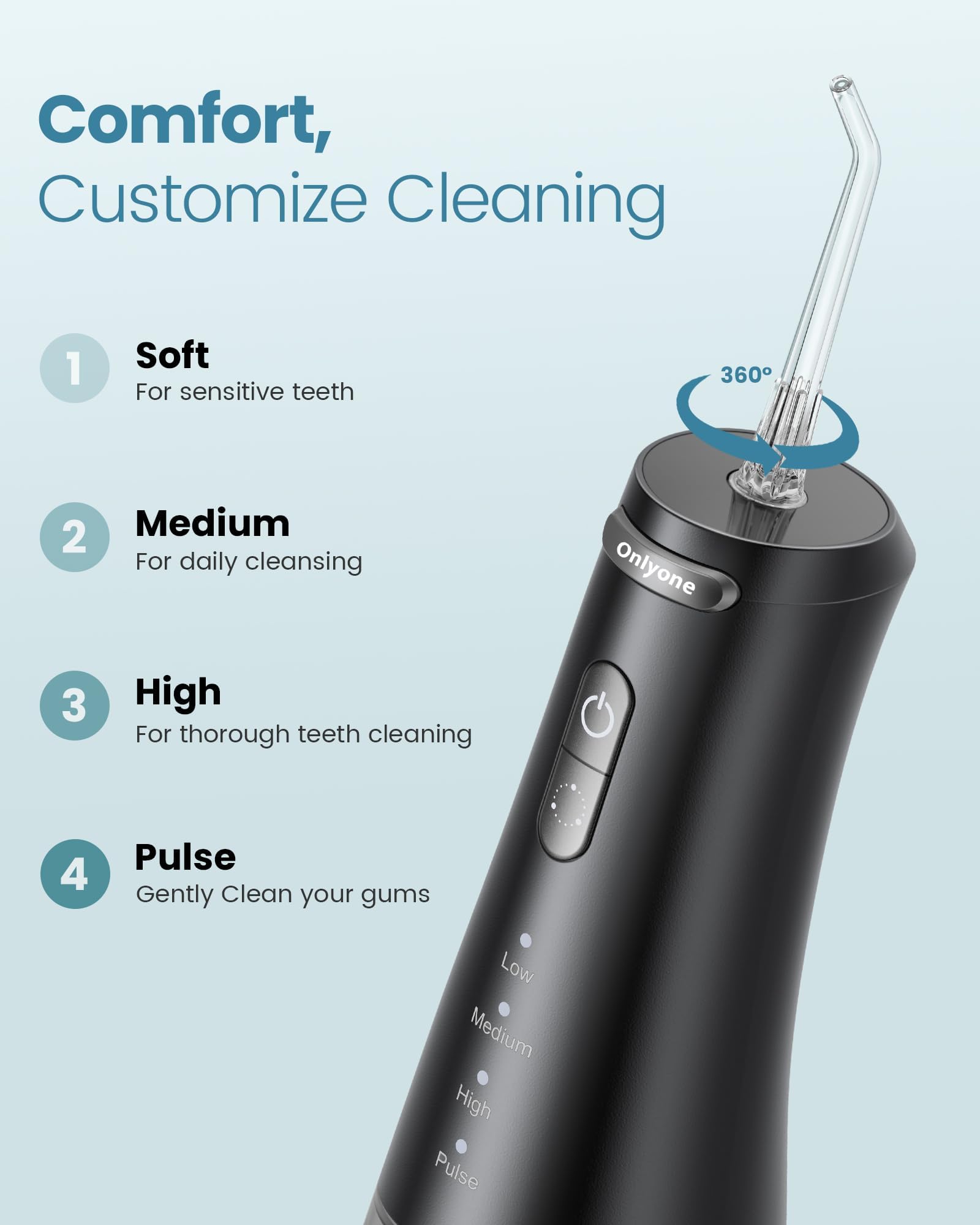 - מומלץ על ידי רופא שיניים: חוט דנטלי מים Onlyone, המאושר על ידי רופאי שיניים מקצועיים, משתמש בטכנולוגיית חוט דנטלי מים מתקדמת. עם 1500-2000 פעימות לדקה בלחץ של 50-150 PSI, הוא יעיל פי 3 מחוט דנטלי מסורתי, ומסיר 99.9% מכתמי השיניים.