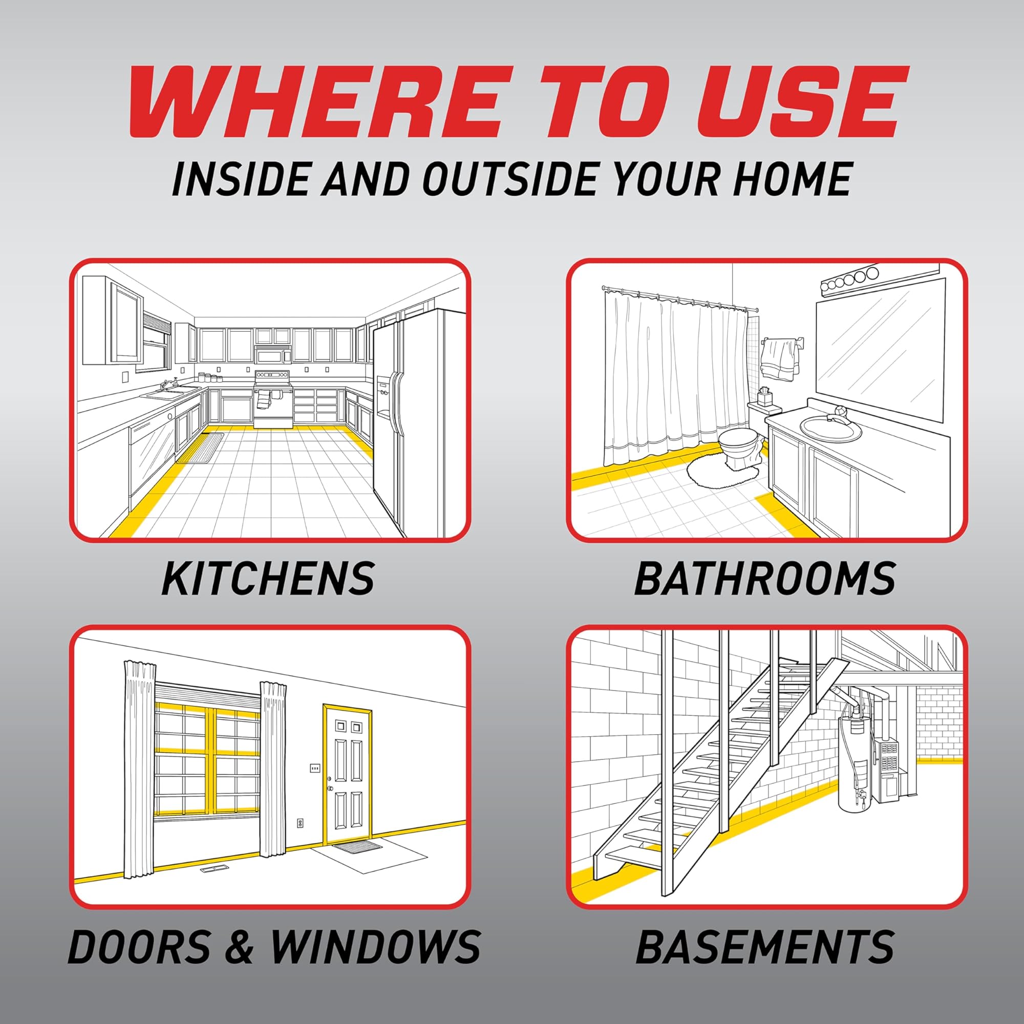 - השתמשו בתרסיס חרקים זה לבית במטבחים, חדרי אמבטיה ומרתפים, וסביב דלתות וחלונות; יש למרוח בחוץ על יסודות כדי ליצור מחסום סביב הבית.