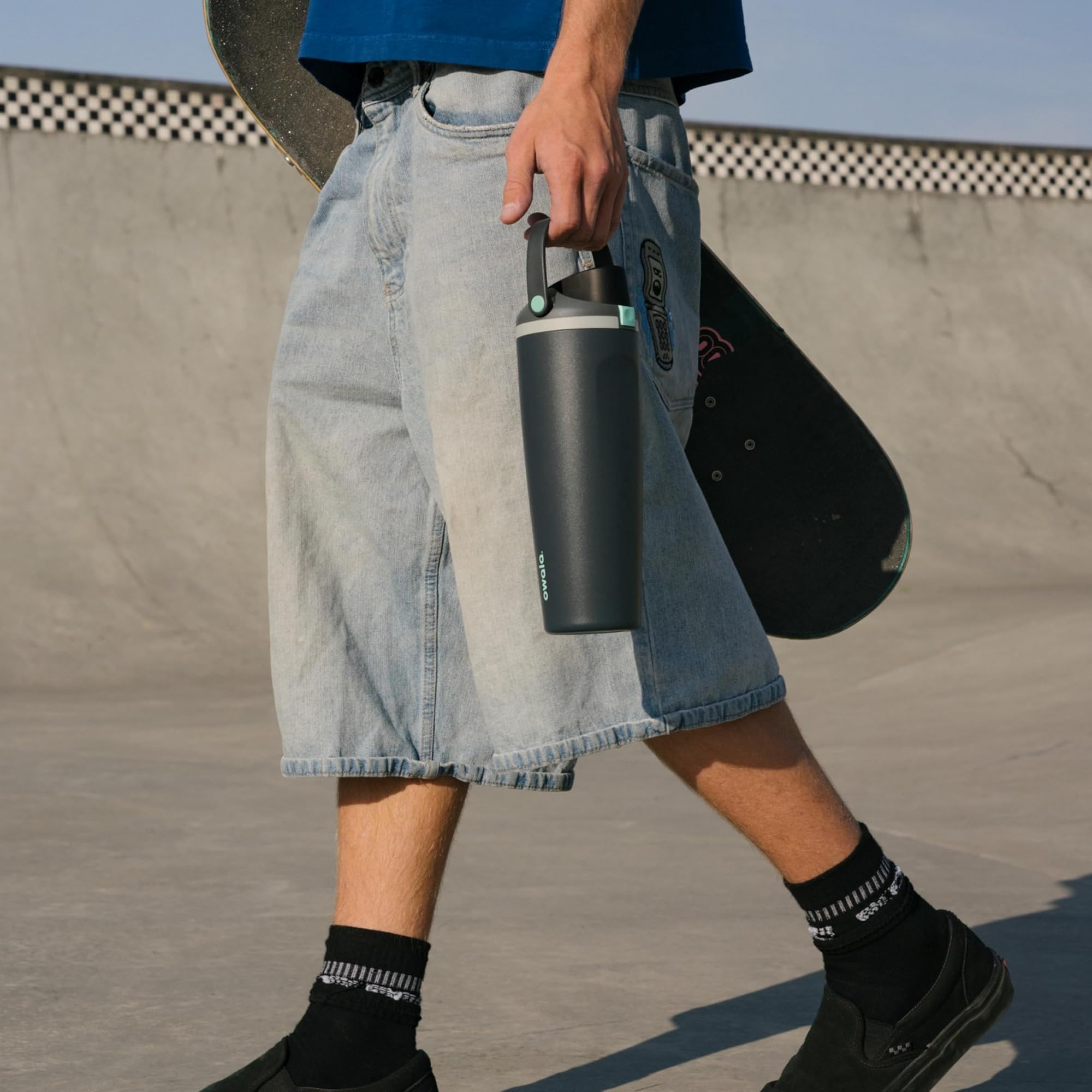 Designed for living life to the fullest, the Owala FreeSip Sway is like our original FreeSip—with even more travel-friendly features. In addition to our patented 2-in-1 FreeSip spout (you know, the one with the built-in straw and open swig option), this 40oz stainless steel water bottle holds plenty of water without being oversized. The sturdy bucket handle makes it easy to grab and go—not to mention comfy to hold. The tapered shape fits pretty much anywhere you’d stash a bottle, including most cupholders—whether it’s your car or your spin bike. The triple-layer insulation keeps drinks cold for up to 24 hours, and the sweat-proof exterior means no slippery hands or water rings.The wide-mouth opening makes cleaning easy and adding ice even easier. Plus, it’s made with BPA-free, durable materials. Sway is the ultimate hydration companion that goes with the flow of your day. It’s the ultimate gift for anyone who needs to up their hydration game. (Yourself included.).