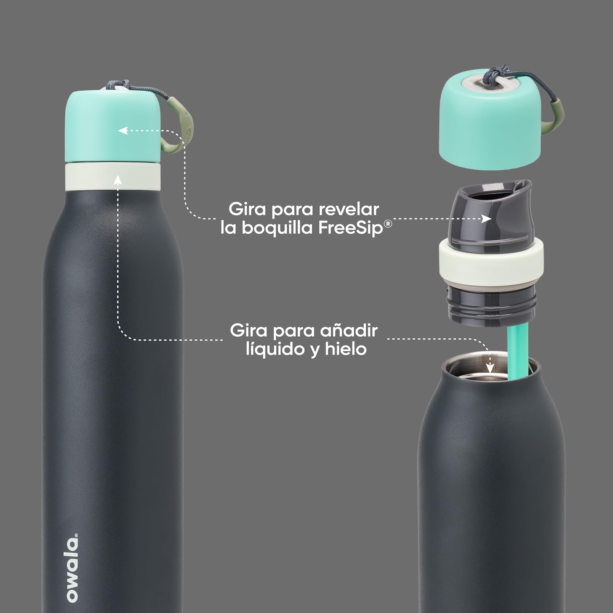 Owala FreeSip Twist Insulated Stainless Steel Water Bottle with Straw for Sports and Travel, BPA-Free, 24-oz, Blue/Grey (Foggy Tide)