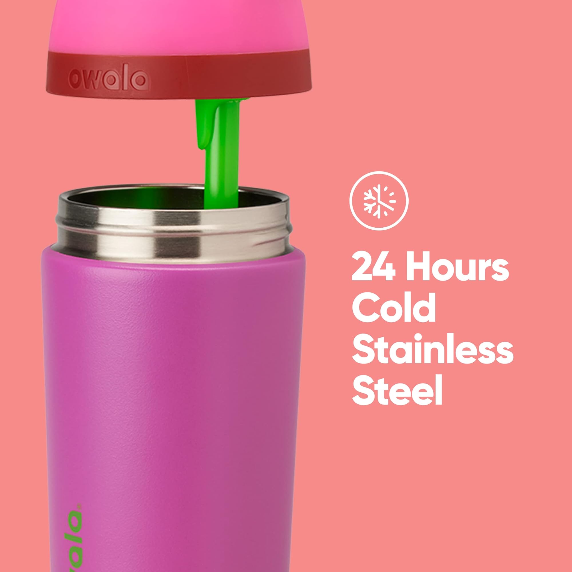 Owala Kids Flip Insulated Stainless-Steel Water Bottle with Straw and Locking Lid, 14-Ounce, Pink/Purple (All the Berries)