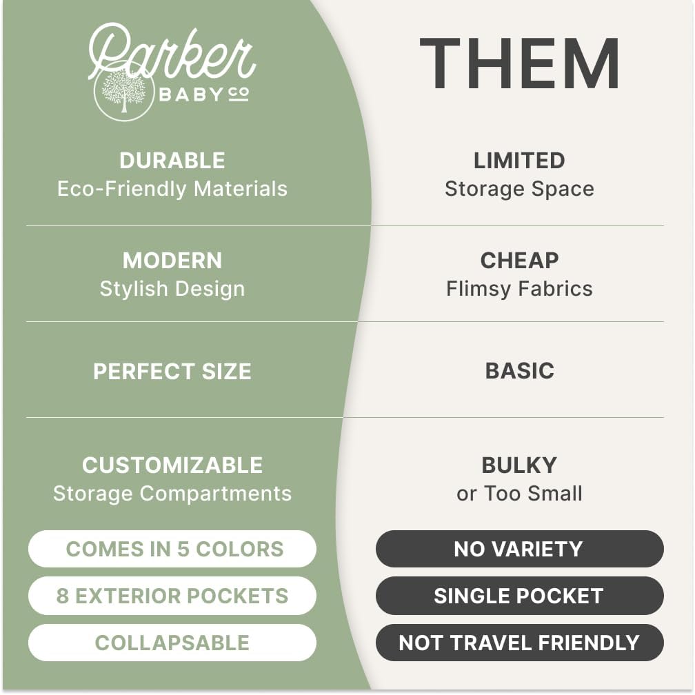 - פתרון אחסון רב-תכליתי לחדר ילדים: מארגן החיתולים של Parker Baby הוא מארגן פטנטי המיועד לכל פריטי התינוק החיוניים שלכם. הוא מכיל חיתולים, מגבונים, בגדים, צעצועים, פדים לחתלה ועוד. תוספת האחסון הנשלפת מאפשרת לו לשמש גם כסל אחסון צעצועים או סל לחדר ילדים.
