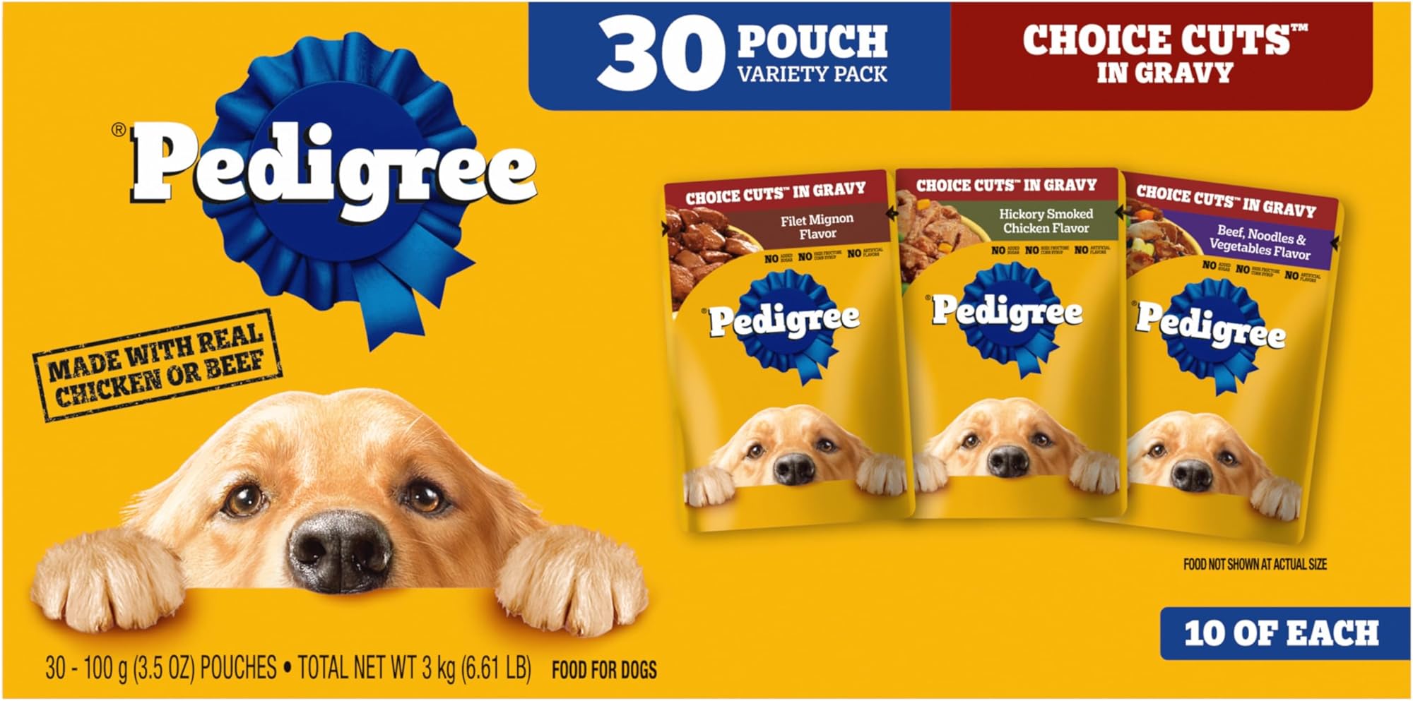 מזון רטוב רך לכלבים בוגרים של Pedigree Choice Cuts in Gravy, אריזה מגוונת, שקיות של 3.5 אונקיות, 30 יחידות