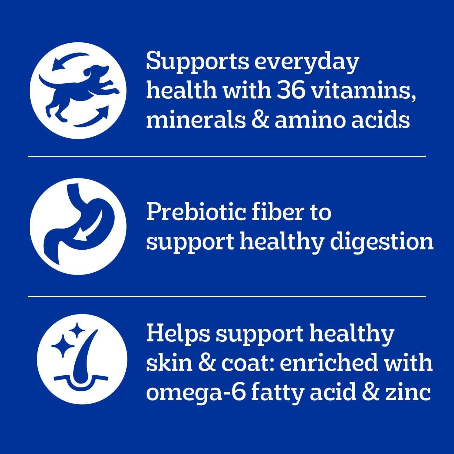 - תומך בעור ופרווה בריאים: מתכון מזון יבש לכלבים זה מועשר בחומצת שומן אומגה 6 ואבץ המסייעים לטפח עור ופרווה בריאים.